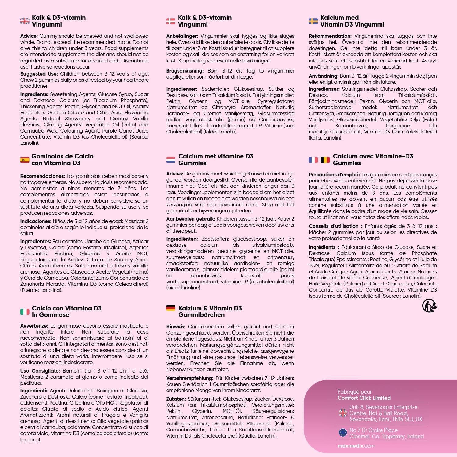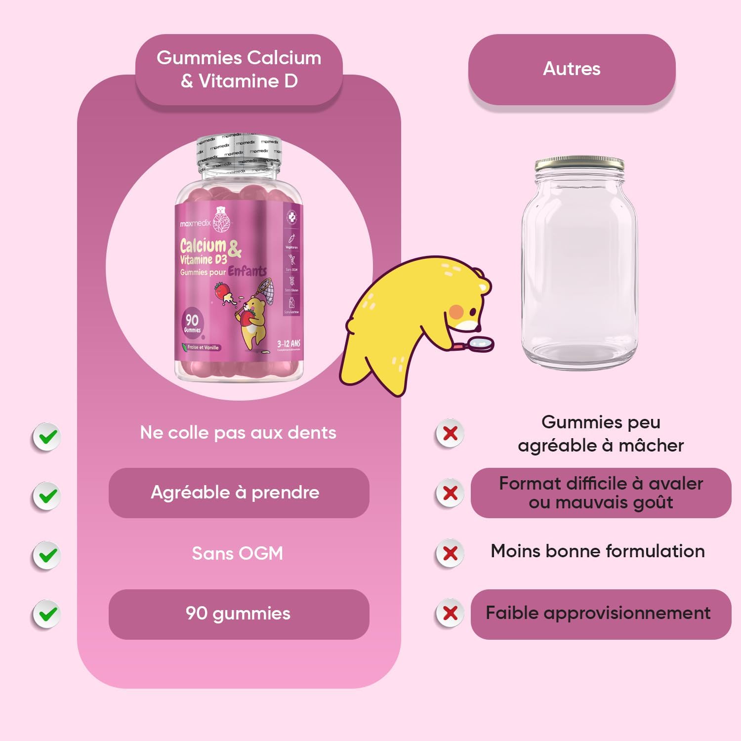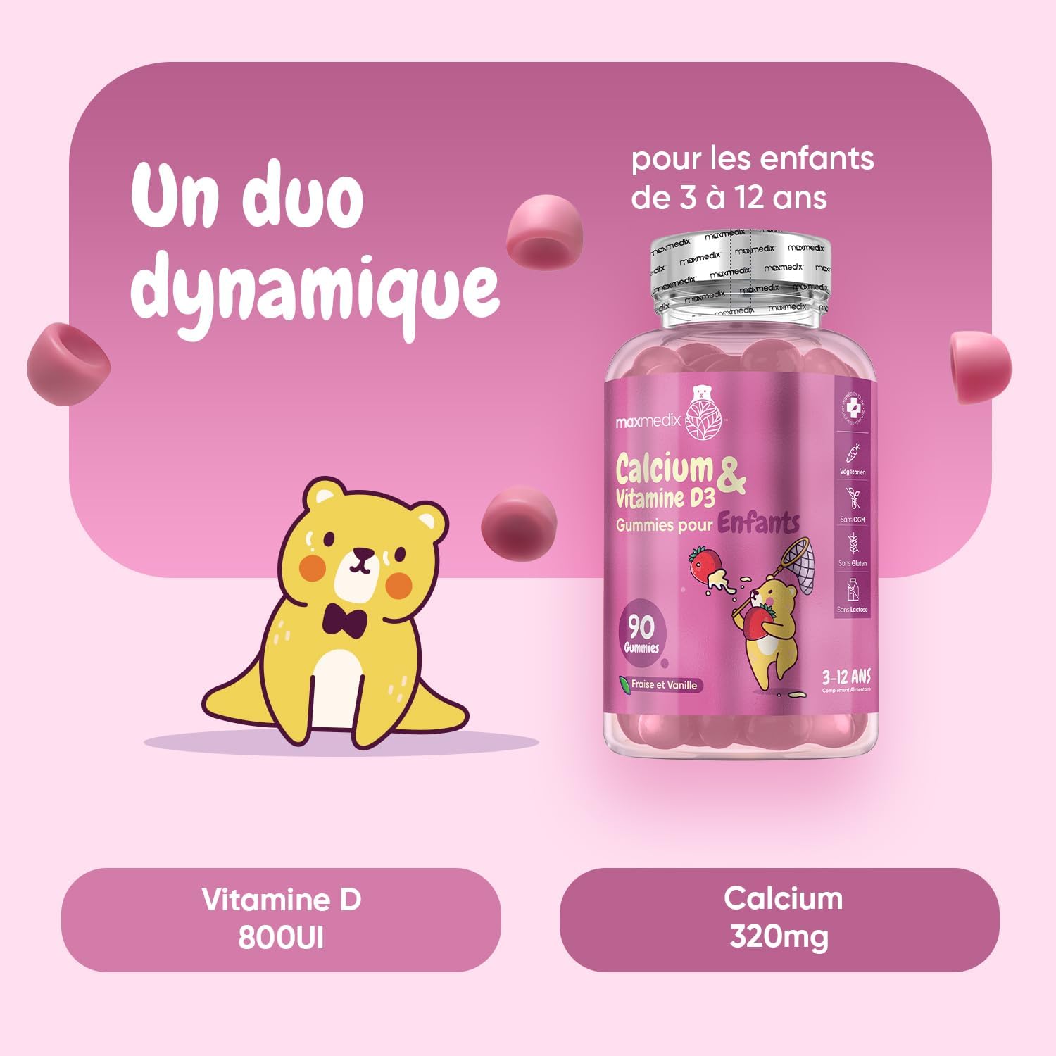 Children’s Vitamin Gummies – Specially formulated for children aged 3 to 12, maxmedix Vitamin D and Calcium gummies have been specially designed for children in full development. With 2 gummies per day, they give access to a sufficient daily dose of vitamin D calcium. In addition, these 90 child gummies have a delicious strawberry and vanilla flavor.