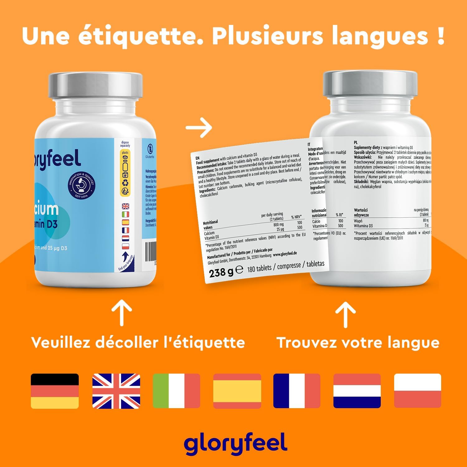 180 HIGHLY DOSED TABLETS – Our pure calcium carbonate and vitamin D3 complex is a strong combination that gives you the benefits of both ingredients at the same time. With a daily serving of 2 tablets per day, you have a high dose of 800mg of calcium and 25 µg of vitamin D3, which is equivalent to a supply of 3 months.