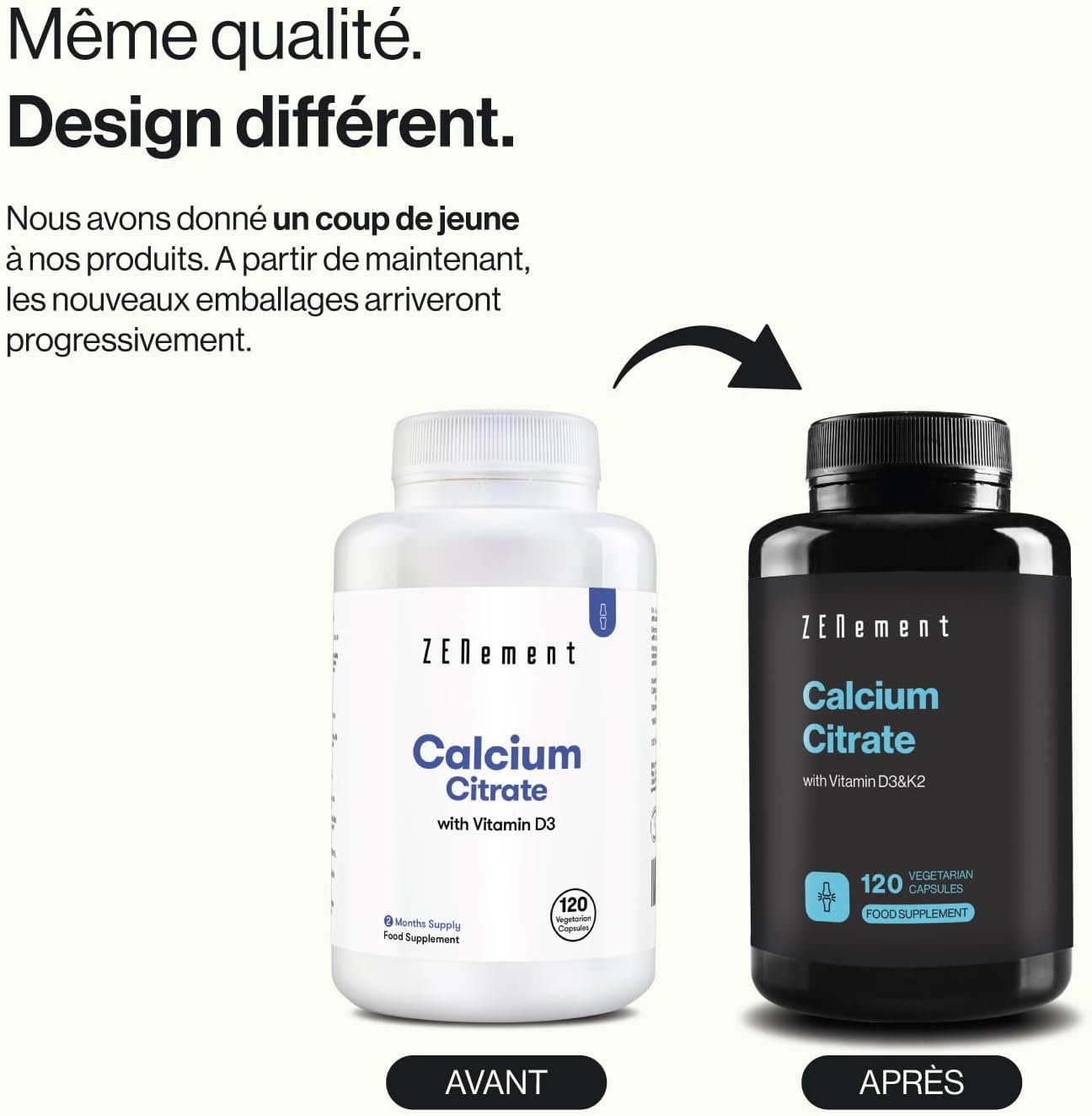 Optimal absorption, better tolerance – Our calcium supplement comes in the form of Citrate, an organic form that ensures optimal absorption and tolerance compared to other products or other calcium salts. In addition, we offer 120 Vegetarian capsules instead of tablets, which makes it easier to take them. The most convenient option for your daily routine!