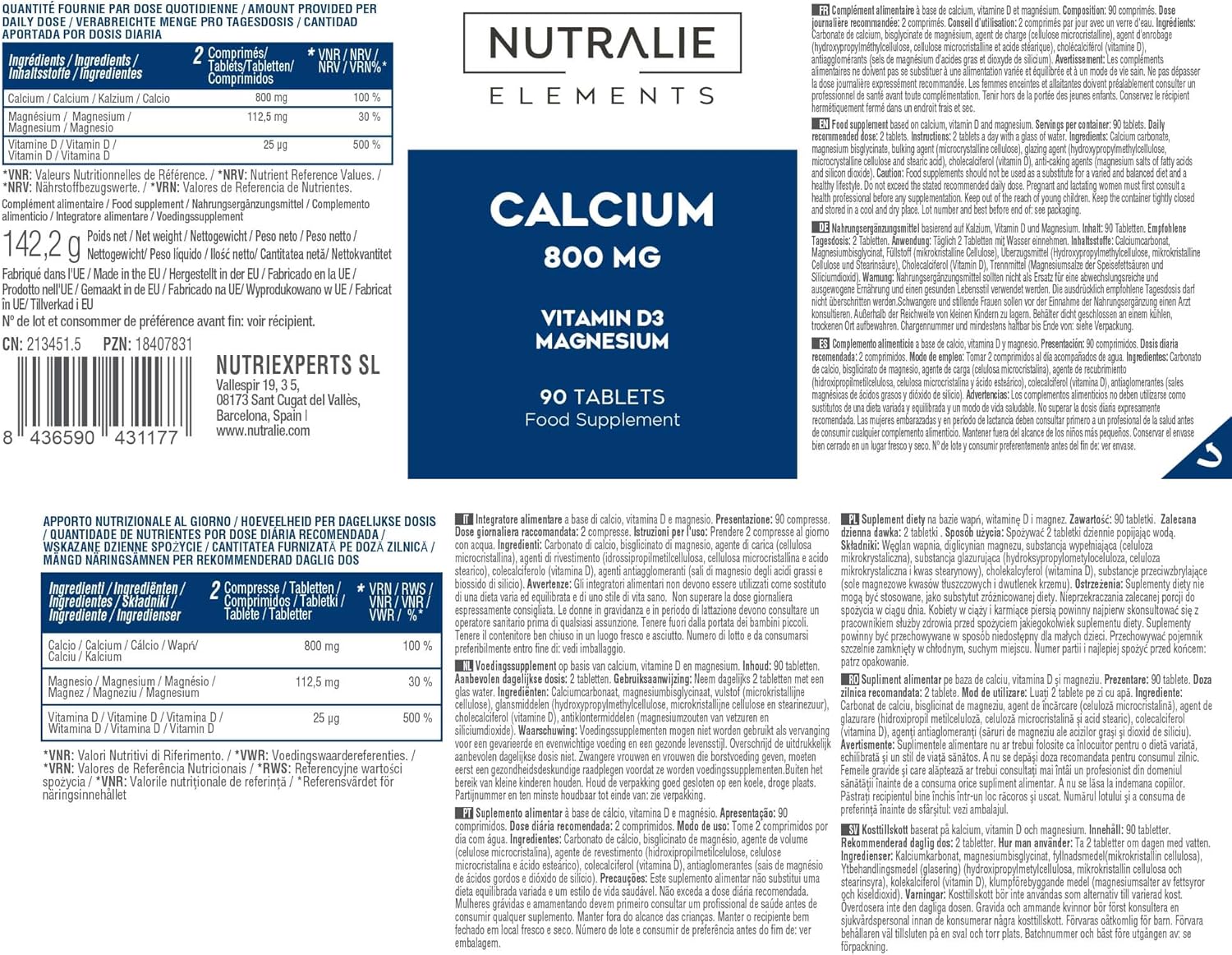 WITH MAGNESIUM: Calcium 800mg Elements from Nutralia contains 112.5mg of Magnesium. Magnesium contributes to normal muscle function. Statements supported by EFSA (European Food Safety Authority).