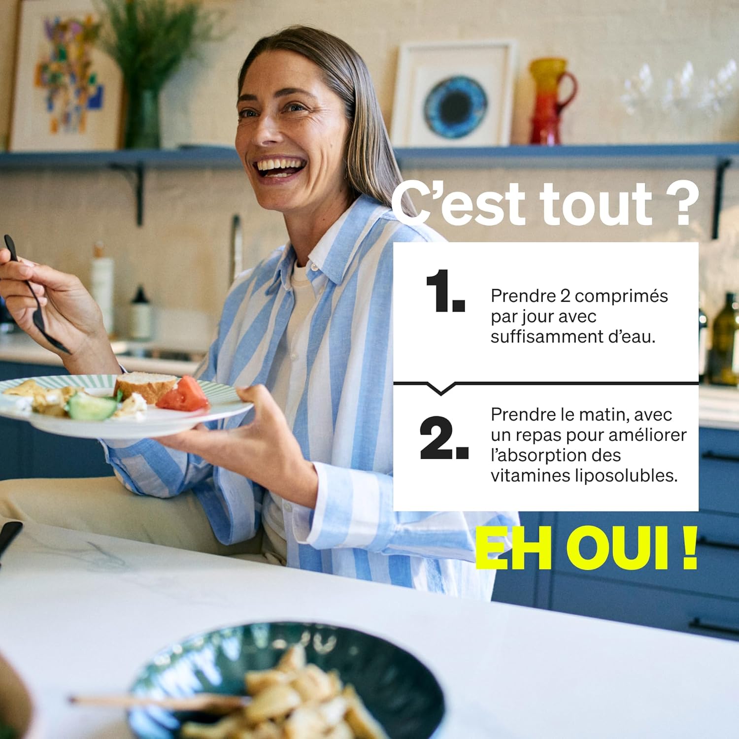 Nous recommandons de prendre les comprimés le matin, pendant un repas, pour que les vitamines D3 et K2 soit absorbées de manière optimale.