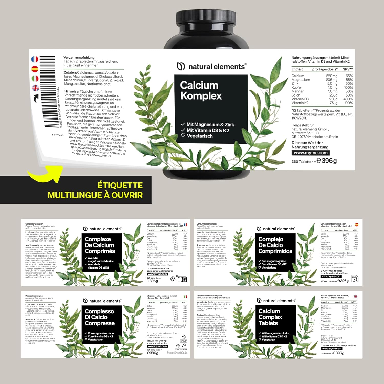 HIGH BIOAVAILABILITY | Each daily serving provides 520 mg of calcium, 206 mg of magnesium, 20 µg (800 IU) of vitamin D3, 28 µg of selenium, and 75 µg of vitamin K2 (MK7). A carefully dosed combination for effective absorption.