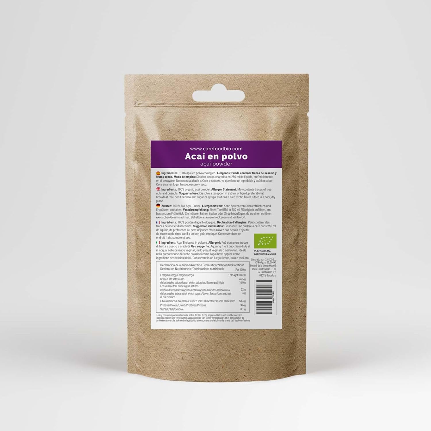 Carefood – Organic Acai Powder – 100% Organic Superfood Suitable for Vegans – Super Food Ideal for Juices, Bowls, Smoothies and Ice Cream – 70g
