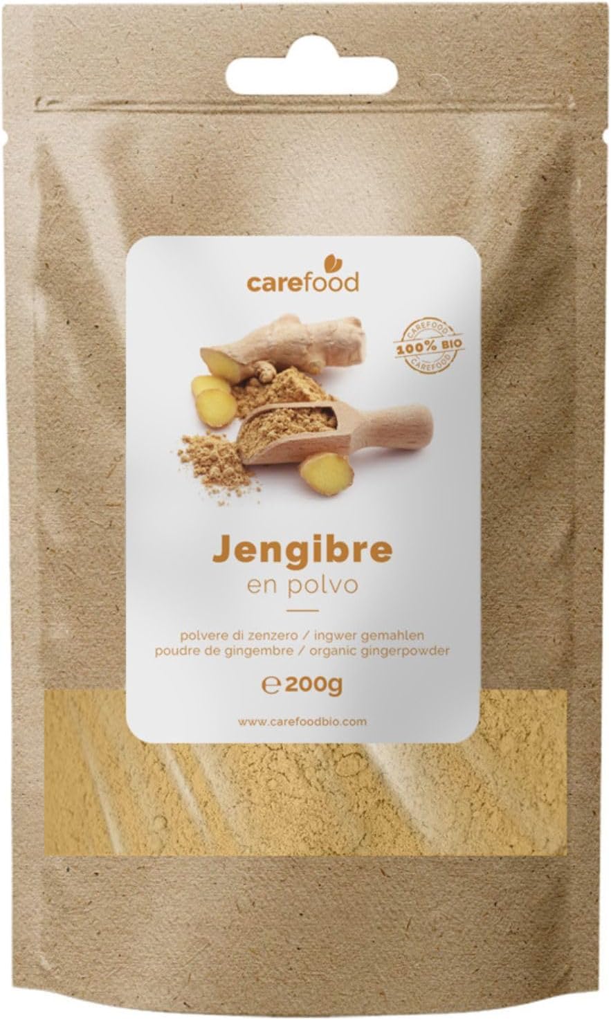 Carefood – Organic Ginger Powder – Superfood 100% Organic Ginger Suitable for Vegans – Natural Superfood Ideal for Meals, Seasonings and Breakfasts – 200g