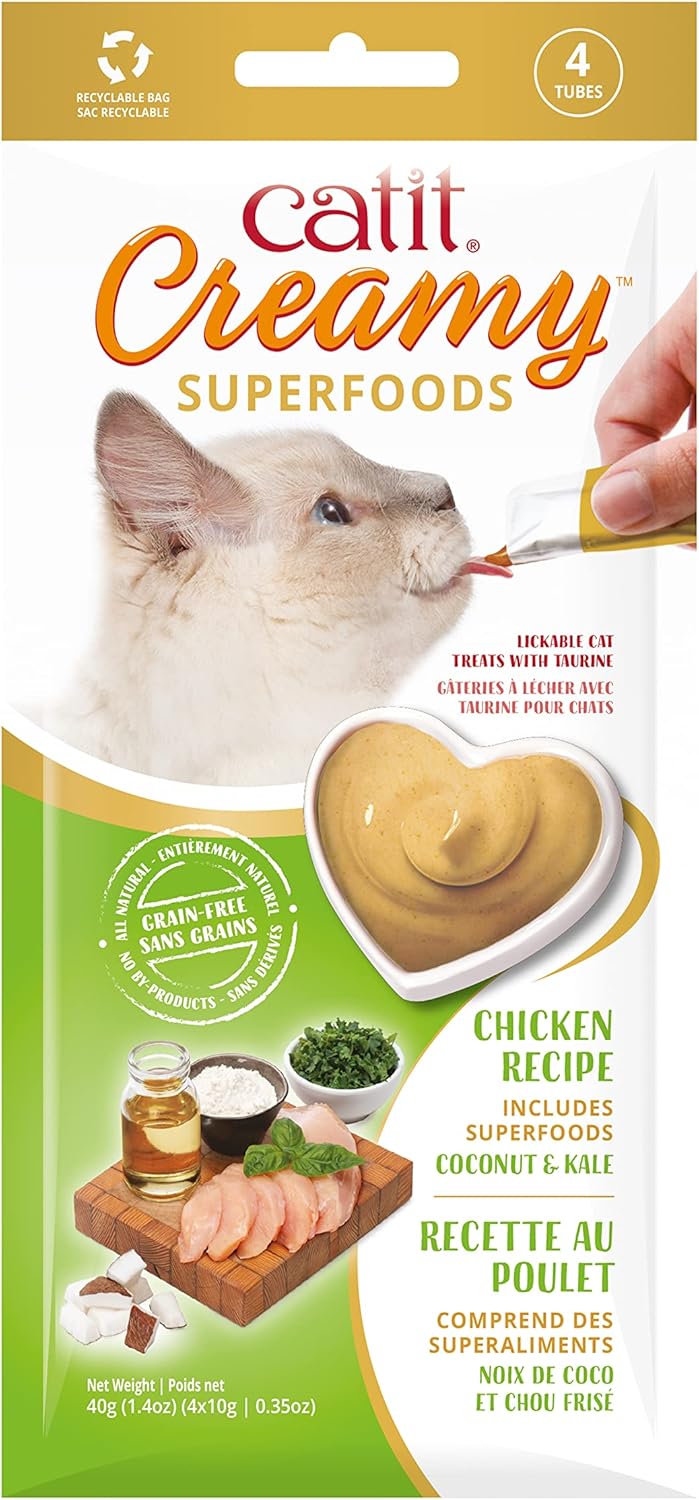 Catit Creamy Superfood Lick Paste for Cats with Chicken Meat and Superfoods, Coconut and Kale