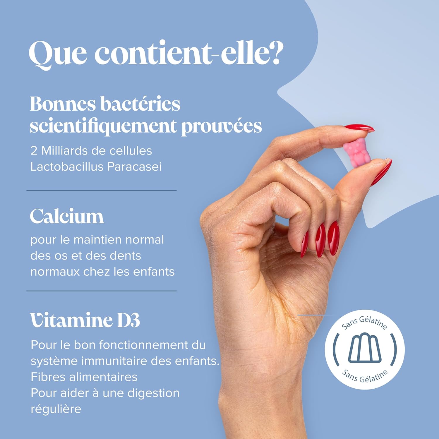 DELICIOUS PROBIOTIC GUMMIES FOR CHILDREN: Our gummies are created to delight all the senses of your children! Our probiotics are presented in delicious strawberry gelatin bears to satisfy your kids’ taste buds. Our gummies contain no artificial colours or preservatives and are NON-GMO and halal. They are made from the highest quality ingredients. Support your children’s gut health with our probiotic supplements.