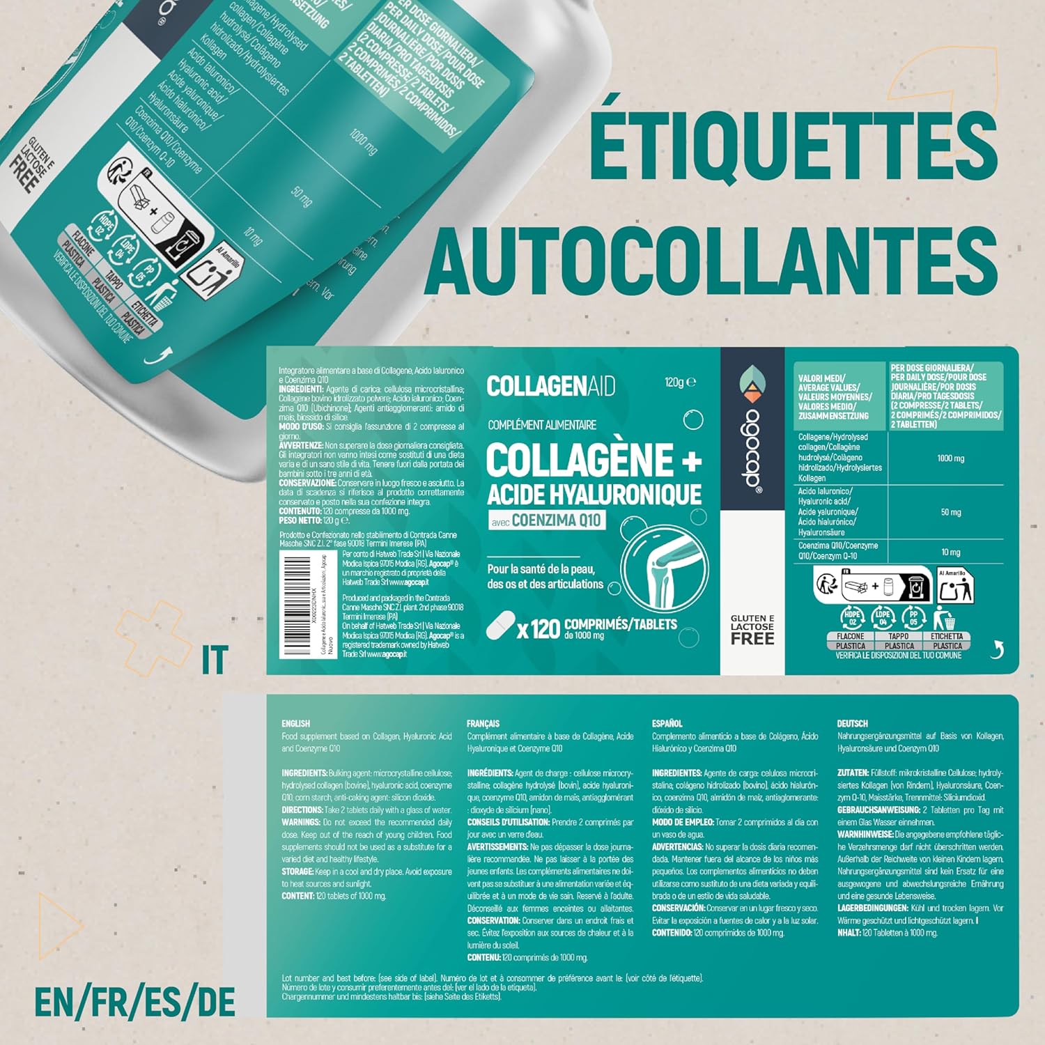 COLLAGEN AND HYALURONIC ACID: Collagenaid is formulated with a novel combination of hydrolyzed collagen peptides, hyaluronic acid and coenzyme Q10. It supports joint and skin health while fighting cell aging. It helps to regain greater joint mobility: everyday activities like getting up, sitting or simply bending your elbows become easier.
