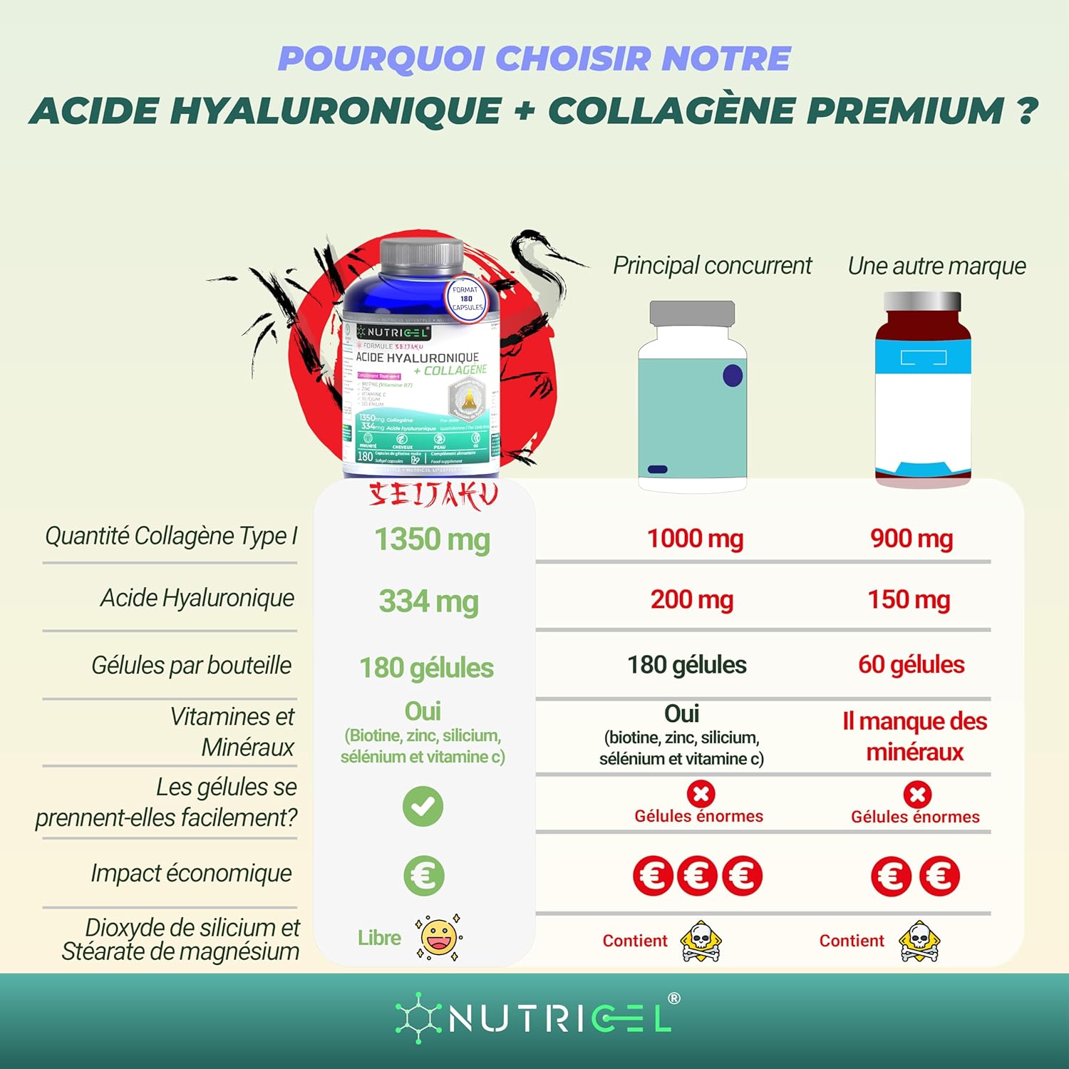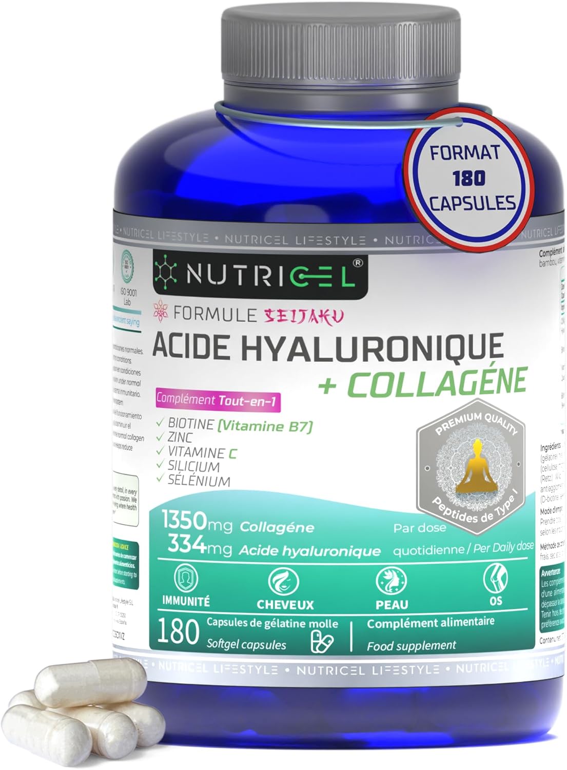 💰Great value and high bioavailability – Supply for 3 months (dose 2 capsules per day), 2 months (dose 3 capsules per day) – 180 capsules of Hyaluronic Acid + Hydrolyzed Collagen – Complete dietary supplement for skin and hair with hyaluronic acid (5 capsules per day) 00-70 0kDa), hydrolyzed collagen, biotin, selenium, zinc, bamboo extract and natural vitamin C of acerola, with the best value for money.