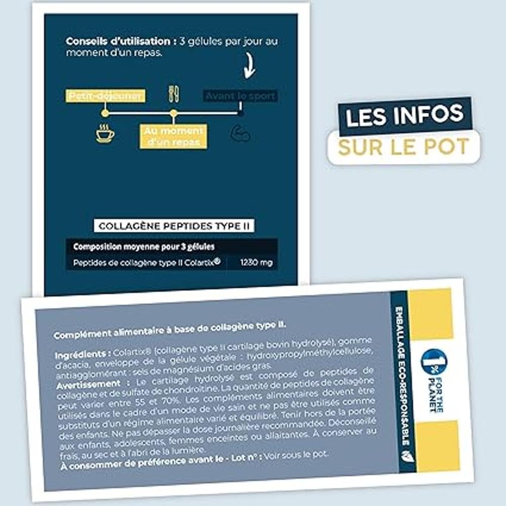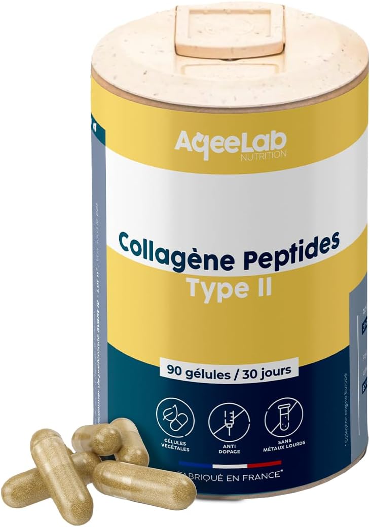Collagen Peptides Peptan® Type 2 – Colartix® • Joints & Cartilages • Hydrolyzed Collagen IIm • 90 Vegetable Capsules • 30 Days • Laboratory Tested • Made in FR • Eco-Friendly • Aqeelab