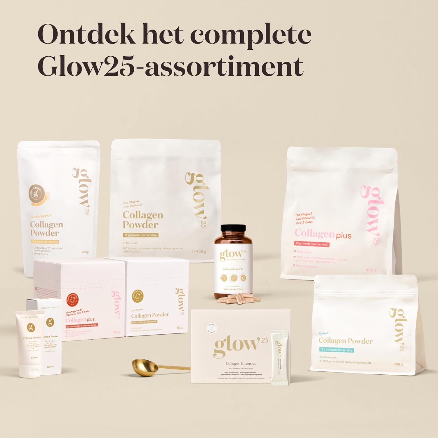 The video showcases the product in use.The video guides you through product setup.The video compares multiple products.The video shows the product being unpacked. Glow25 collagene collagen Merchant video