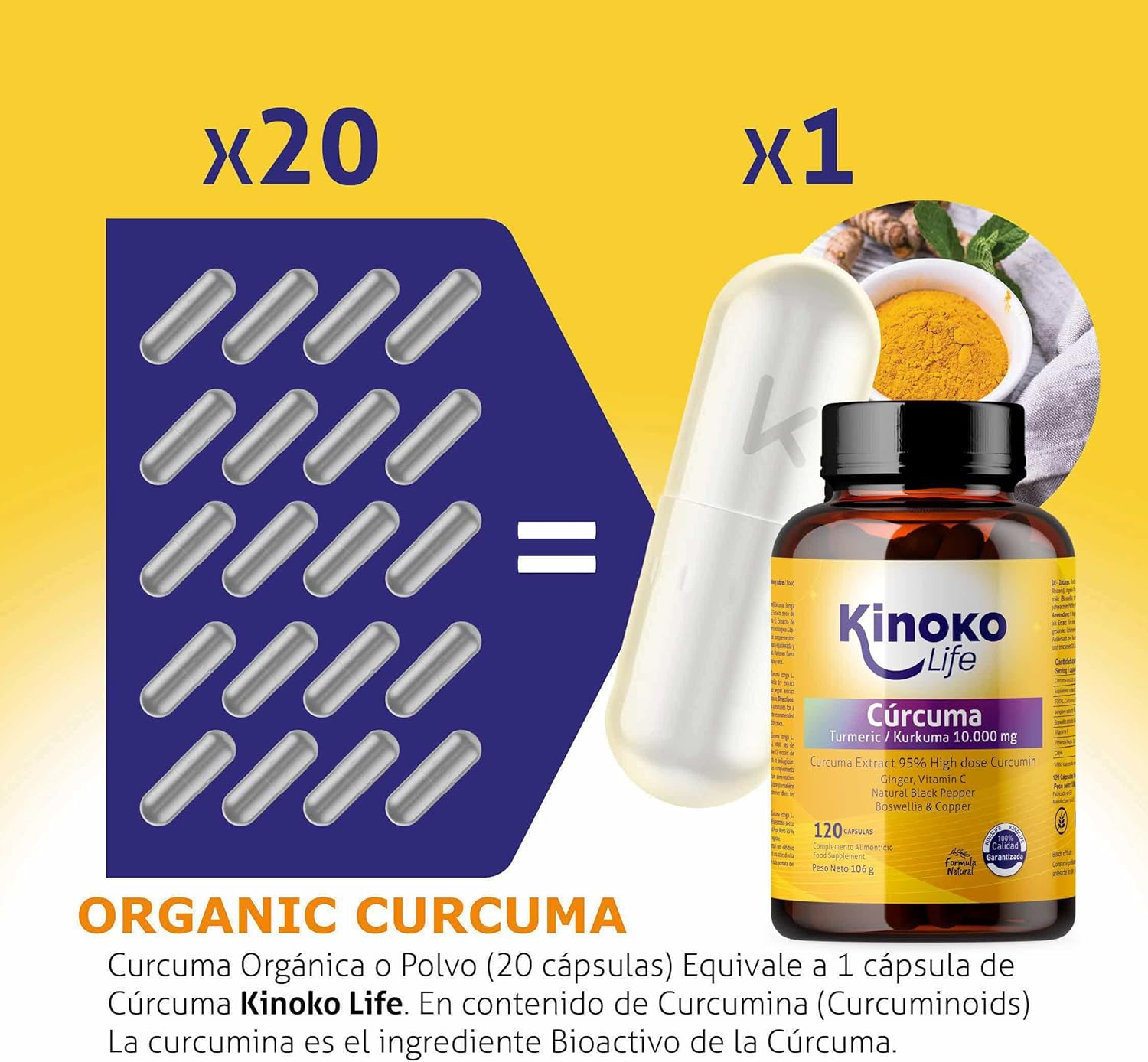 MAXIMUM CONCENTRATION: Turmeric or natural turmeric extract 20:1 with pure curcumin. The highest on the market. Bioactive curcumin per capsule. One capsule of our turmeric is equivalent to 20 capsules of turmeric powder or organic in curcumin content.