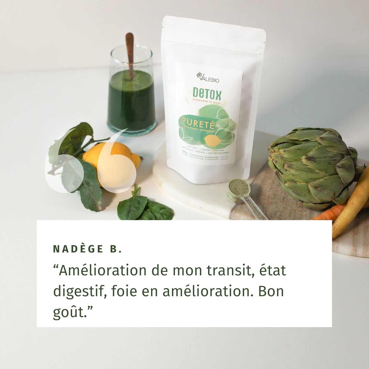 💪 DETOXIFIES THE BODY WITHOUT FATIGUE: The Valebio detox complex drains toxins from the body, with a global detox action liver, kidneys and intestines. It stimulates the body’s detoxification process through a combination of natural ingredients, including spirulina, artichoke, lemon, green tea and acerola. Rich in vitamins and minerals, it is one of the few detoxifiers that removes toxins without fatigue.