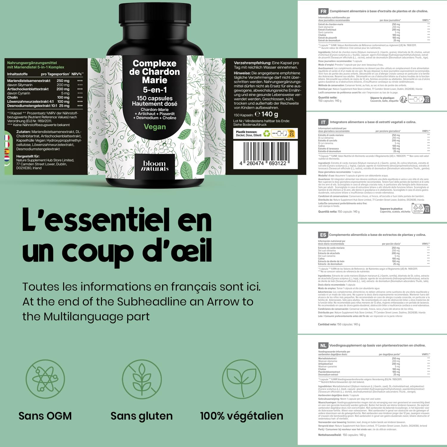 5-in-1 Detox Formula: A complete complex combining milk thistle, artichoke, dandelion, desmodium and choline. Each ingredient is carefully selected for a natural synergy on a daily basis.