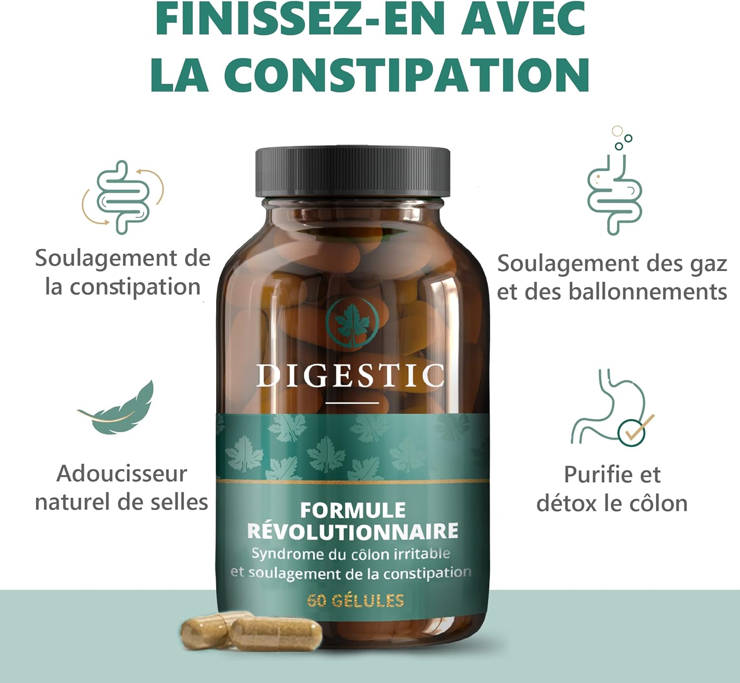 The 18-YEAR FRUIT OF SCIENTIFIC RESEARCH: Are you tired of constipation products that just don’t work? Tired of tea, prune juice, digestive enzymes, enema kits, probiotic capsules? Discover the revolutionary scientifically proven solution to effectively relieve digestive comfort. Order Digestic, a 100% natural herbal supplement for constipation.