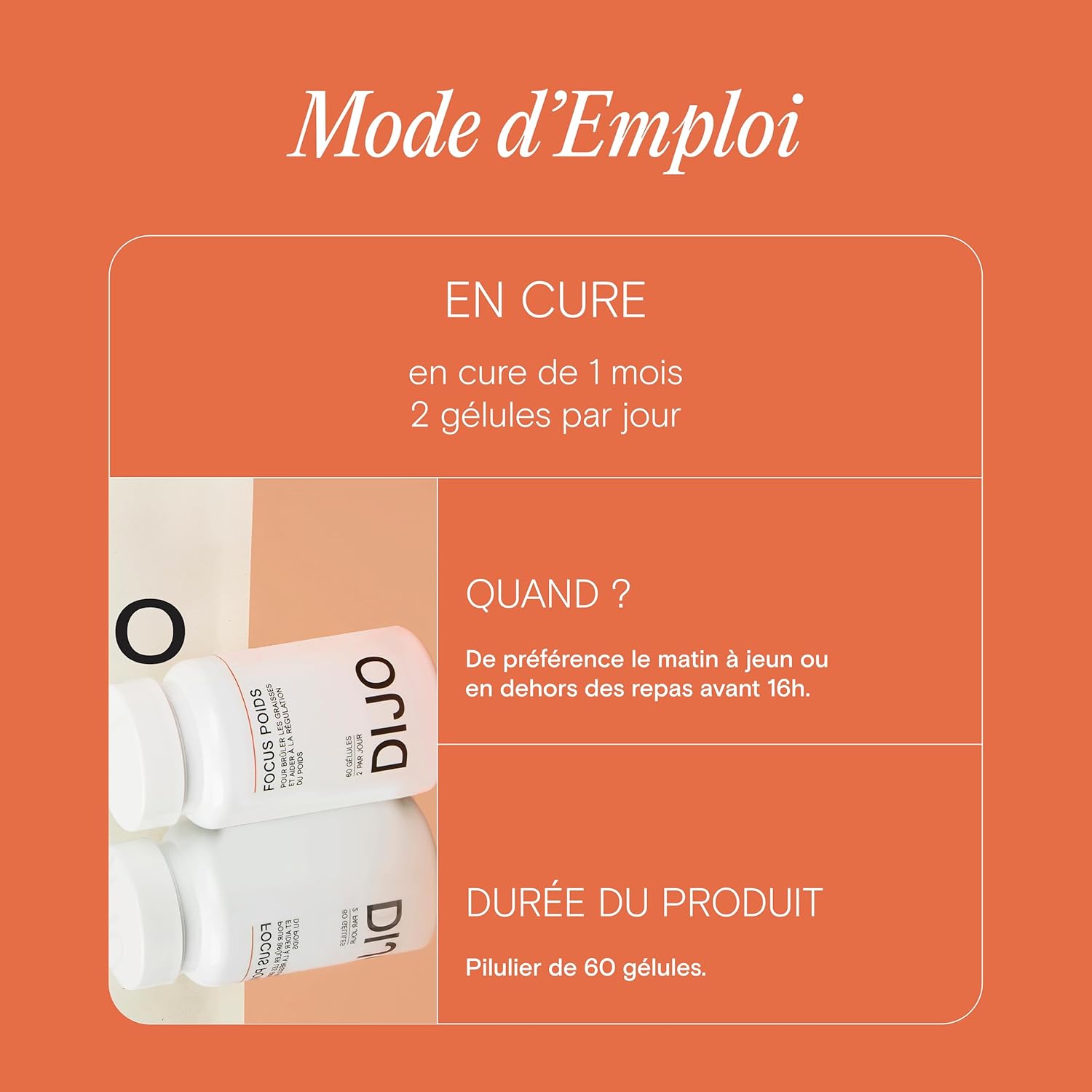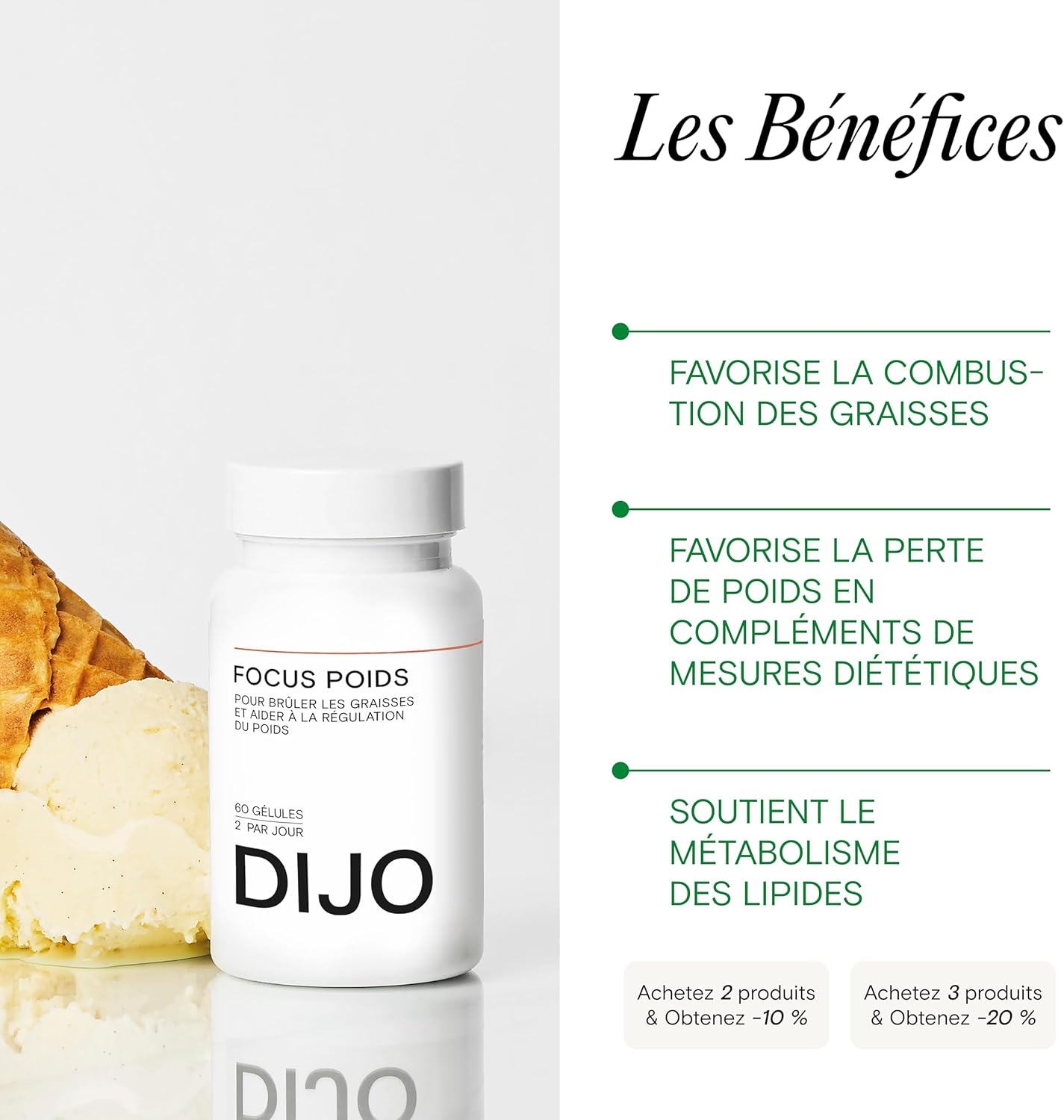 DIJO – Focus Weight – Weight Management – Prebiotic Flavonoids – Strengthens Microbiota and Immune System – Increases Energy Expenditure and Fat Burns – 30 Day Course – Made in France