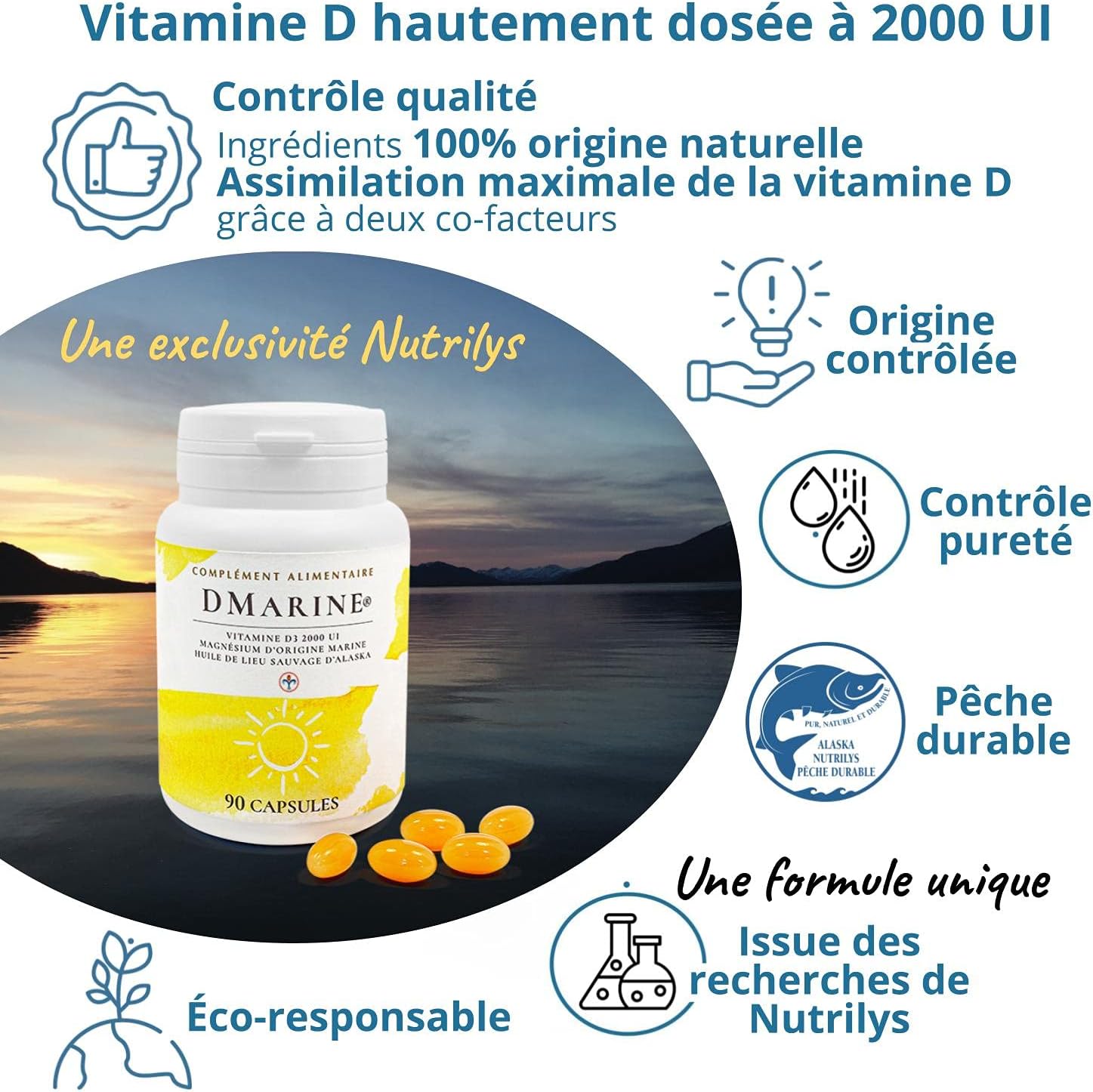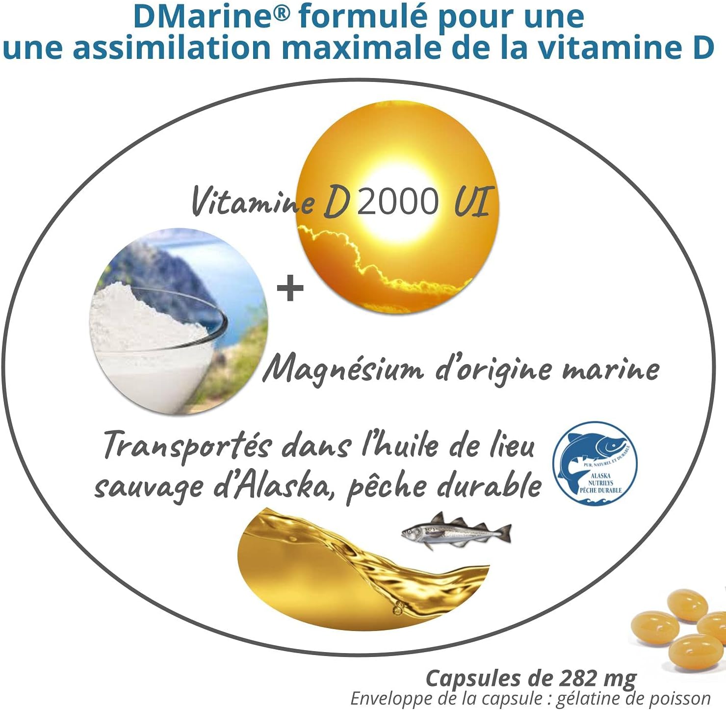 100% NATURAL ORIGIN: Vitamin D3 contained in DMarine is derived from lanolin. Magnesium is of marine origin (Aquamin) and wild place oil comes from an overfishing fishery in Alaska.