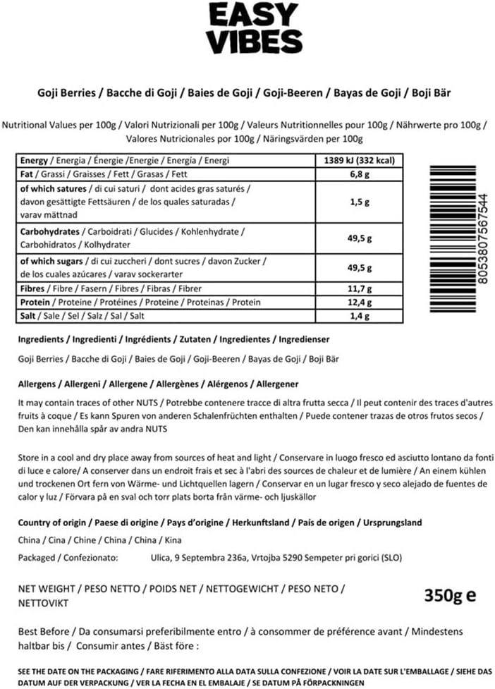 Easy Vibes – Natural Goji Berries (350g) – Dried