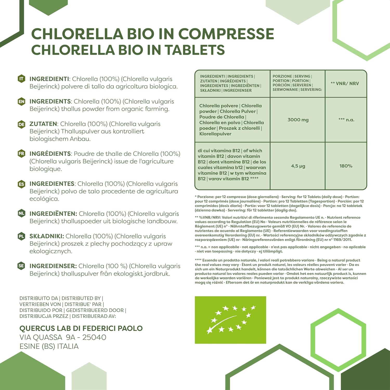 ERBOTECH, 800 Organic Chlorella Tablets, Chlorella Pure Seaweed Capsules in 200g Pack, Rich in Iron, Omega 3 and Vitamin B12, Gluten Free, Suitable for Vegetarians and Vegans