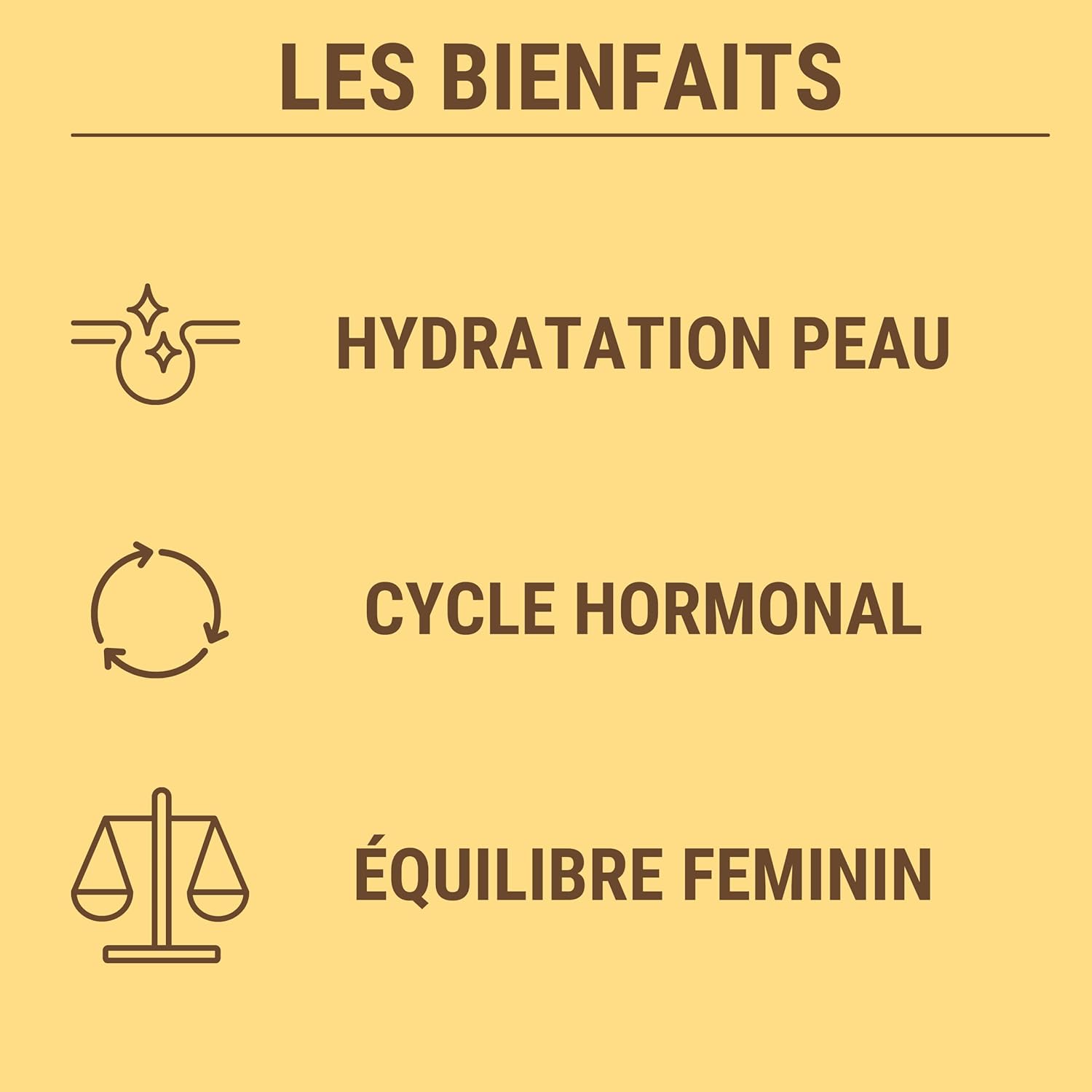 Women’s balance and hormonal cycles: the fatty acids contained in these two oils will help maintain the hormonal balance in women, especially during menopause. They will also have a beneficial effect on PMS and play a role in regulating the hormonal cycle.