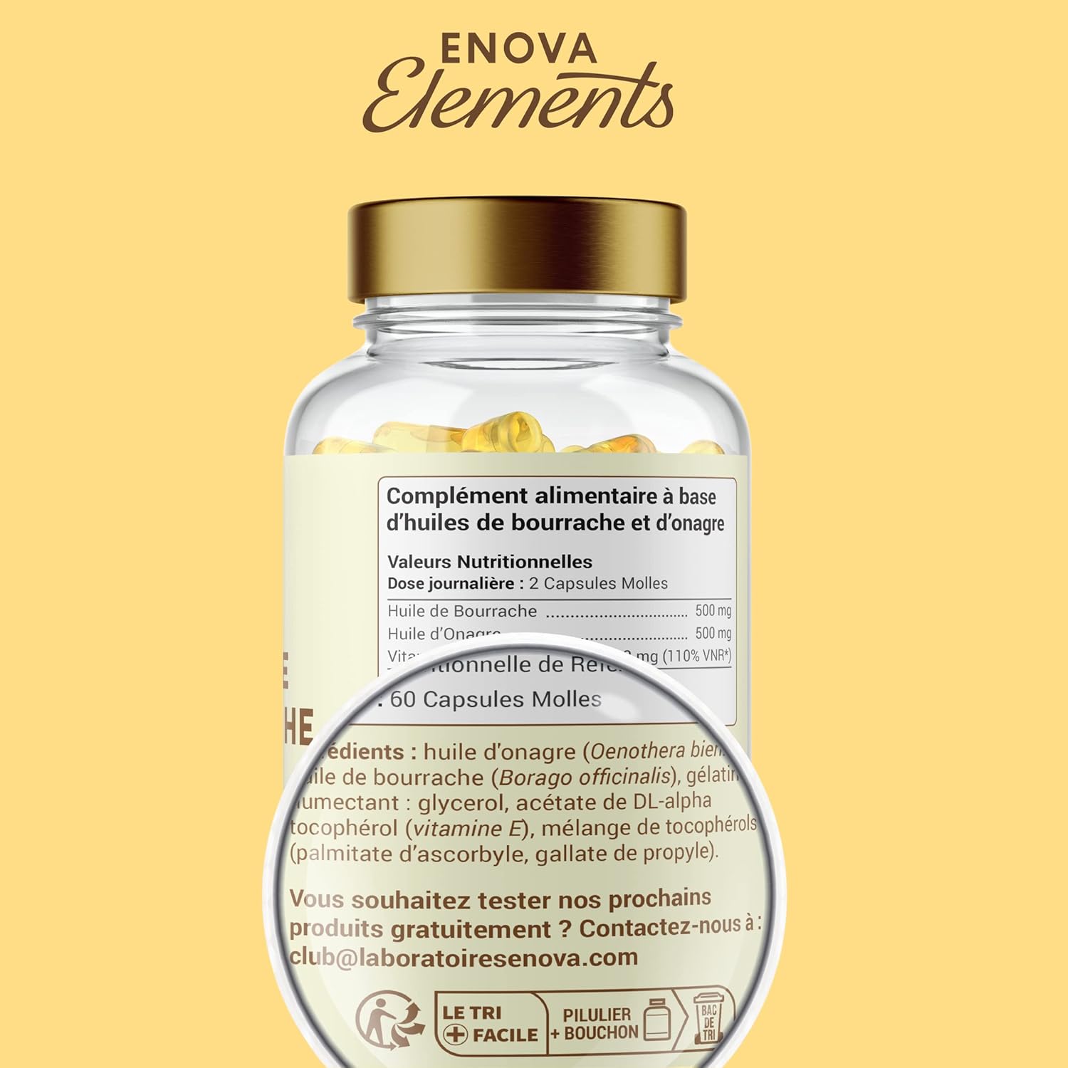 Evening Primrose Borage + Vit E | Borage Oil Cold Pressed Evening Primrose Oil | Hormonal Balance Women, Menopause and PM Syndrome | Skin | 1000 MG | 60 Capsules | Made in France