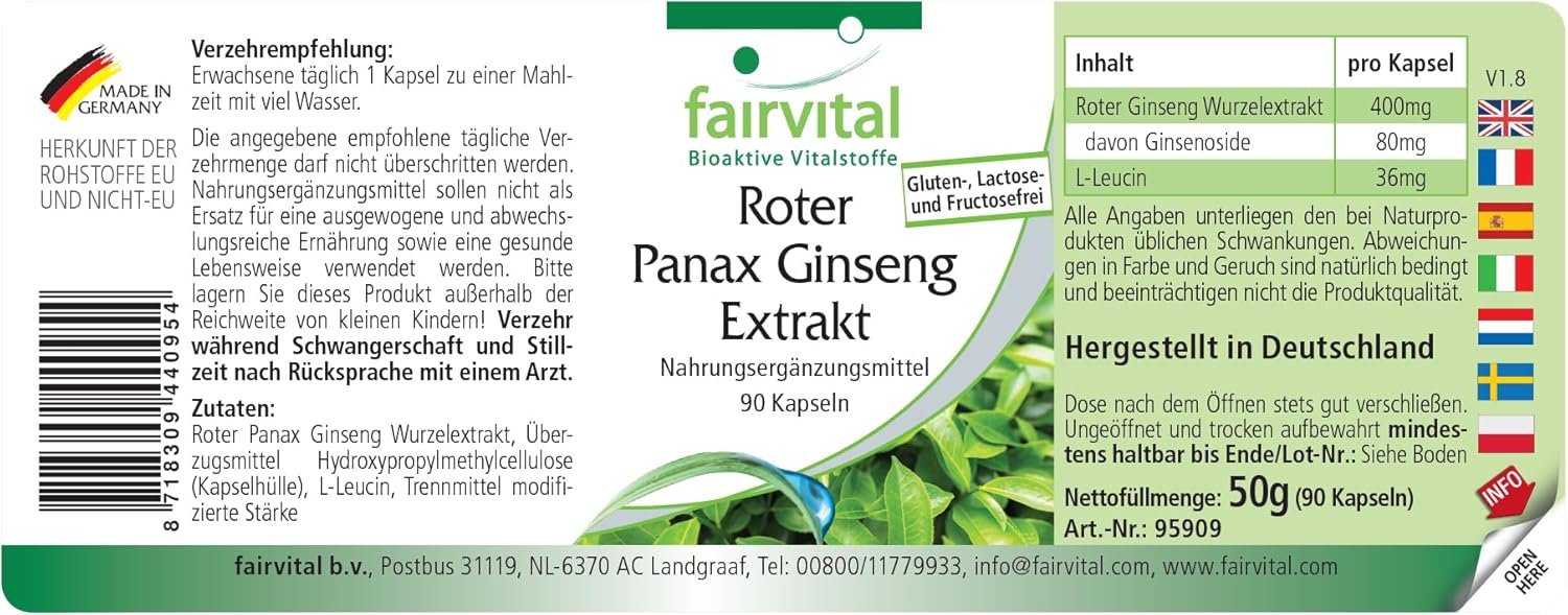 Be the first to review “fairvital Panax Red Ginseng Extract, 400mg Korean Ginseng Extract per capsule, HIGH-DOSE, VEGAN, 90 capsules, easy to swallow, C. A. Meyer” Cancel reply