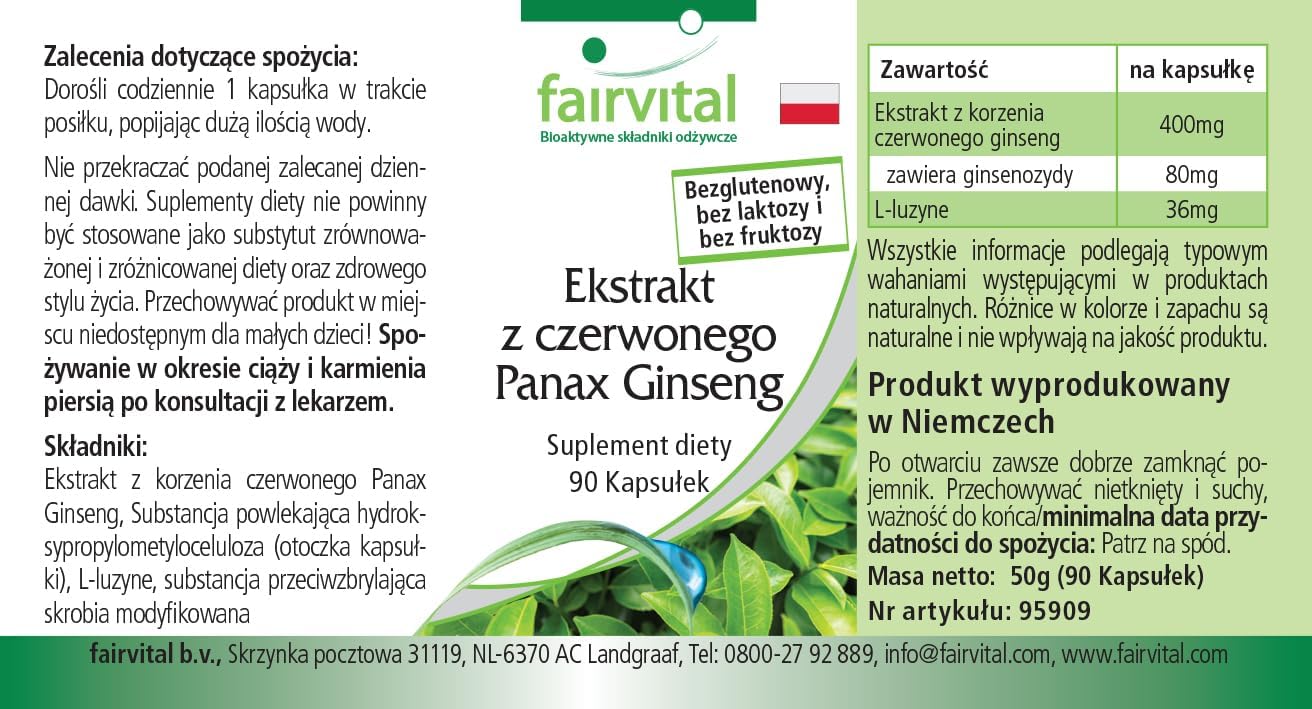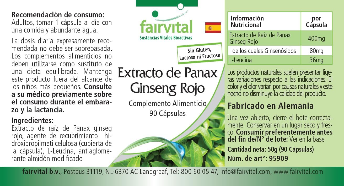 fairvital Panax Red Ginseng Extract, 400mg Korean Ginseng Extract per capsule, HIGH-DOSE, VEGAN, 90 capsules, easy to swallow, C. A. Meyer