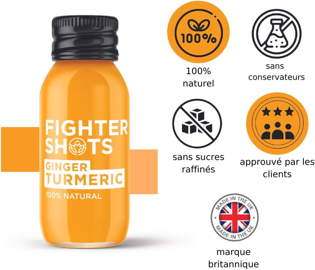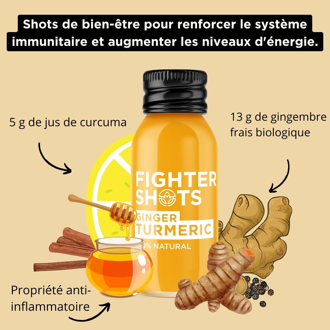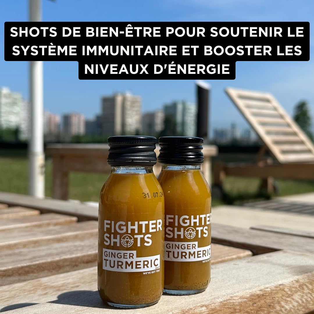 Fighter Shots Ginger + Turmeric (12x60ml) | 100% Natural | Perfect for Giving You a Boost | No Preservatives | Fresh and Tasty Turmeric Shots