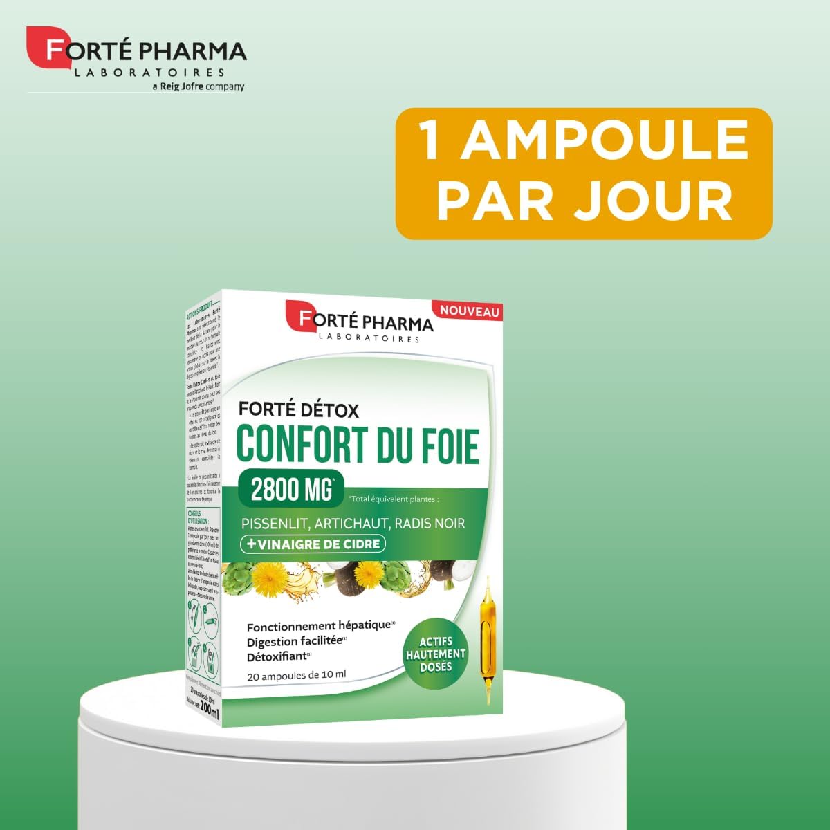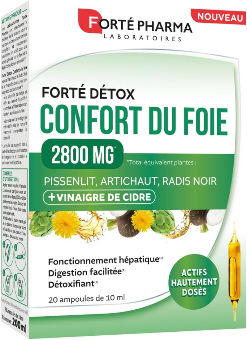 Forté Pharma – FortéDetox Liver Comfort 2800mg – Detoxifying, Liver Functioning, Easy Digestion – Apple Cider Vinegar, Dandelion, Artichoke, Black Radish – 20 ampoules, 1/day