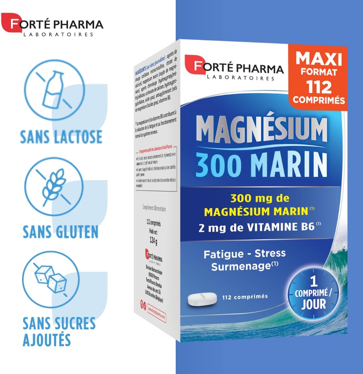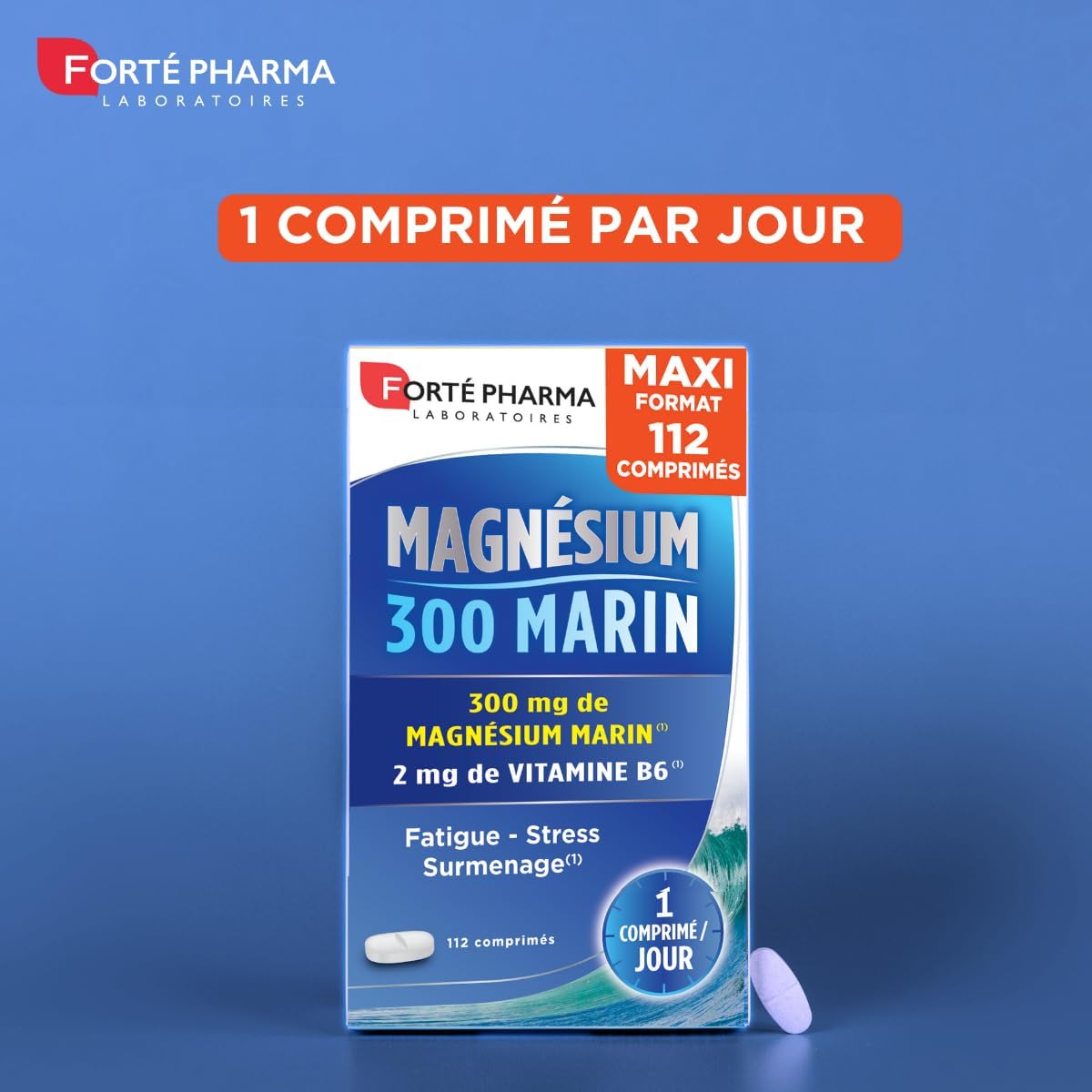 Forté Pharma – Magnesium 300 Marin | Magnesium Marin Food supplement + Vitamin B6 – Stress, Fatigue, Overwork, Irritability, Nervous System | Maxi format 112 tablets, 1/day