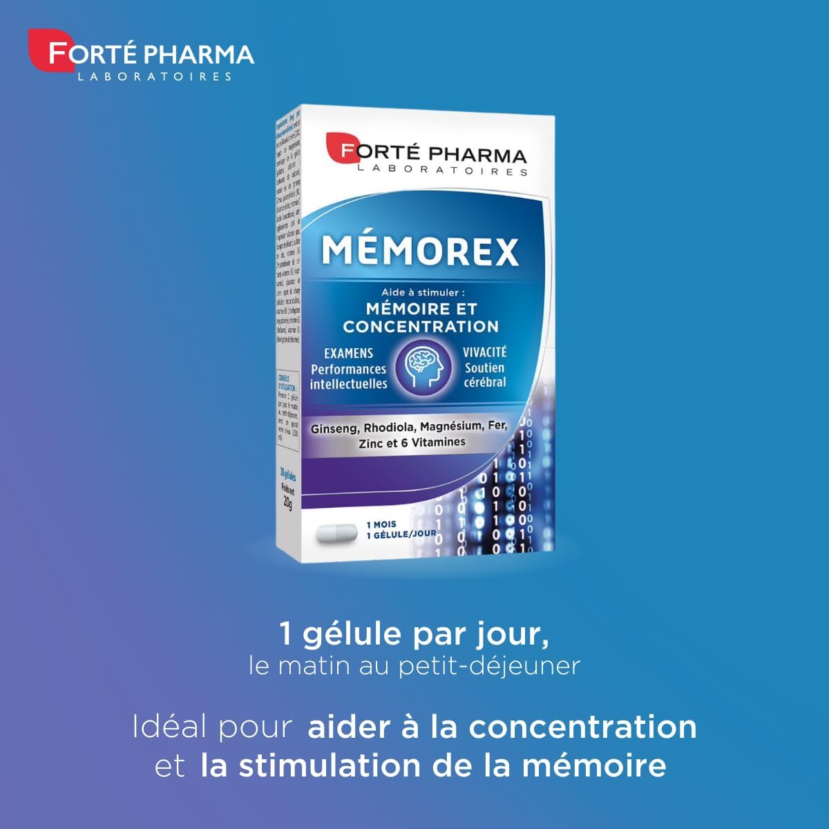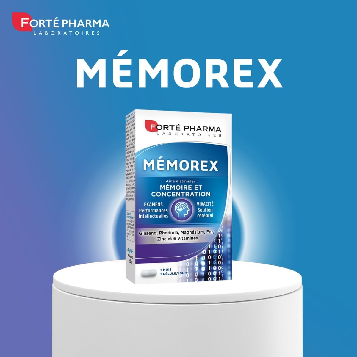 Forté Pharma – Memorex | Food Supplement – Memory, Adult Concentration, Stress – Vitamins, Minerals and Plants – Rhodiola, Vitamin C, Iron, Magnesium, Zinc | 30 Capsules, 1/Day