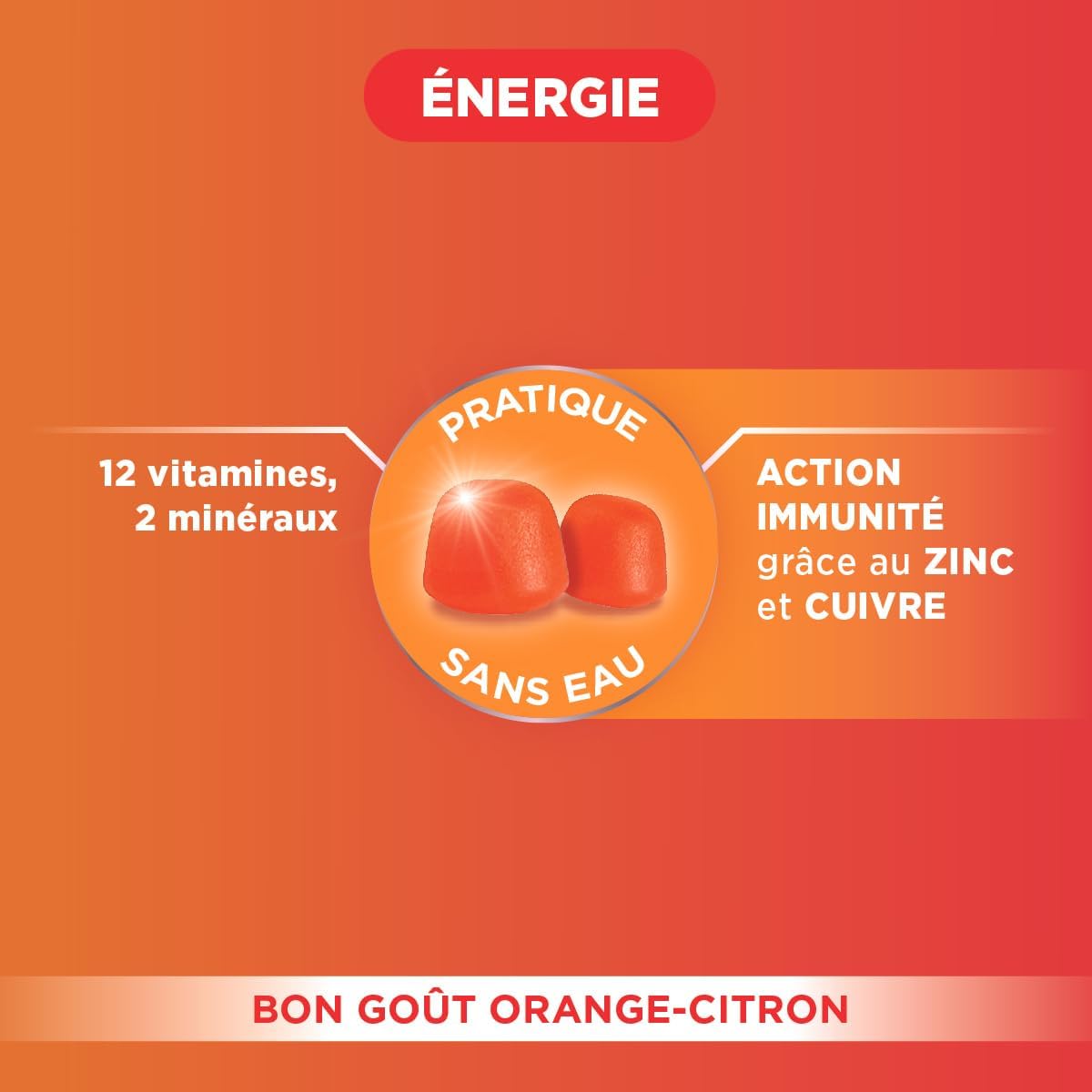 MultiVit’Gummies Energie by Forté Pharma combines 12 vitamins and 2 minerals: zinc and copper to support the body (1) and vitality (2). A practical format, with a good orange-lemon taste, to combine fun and shape in everyday life. Also suitable for children from 4 years old