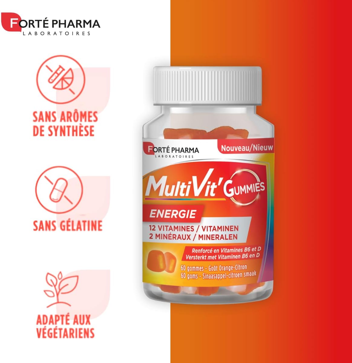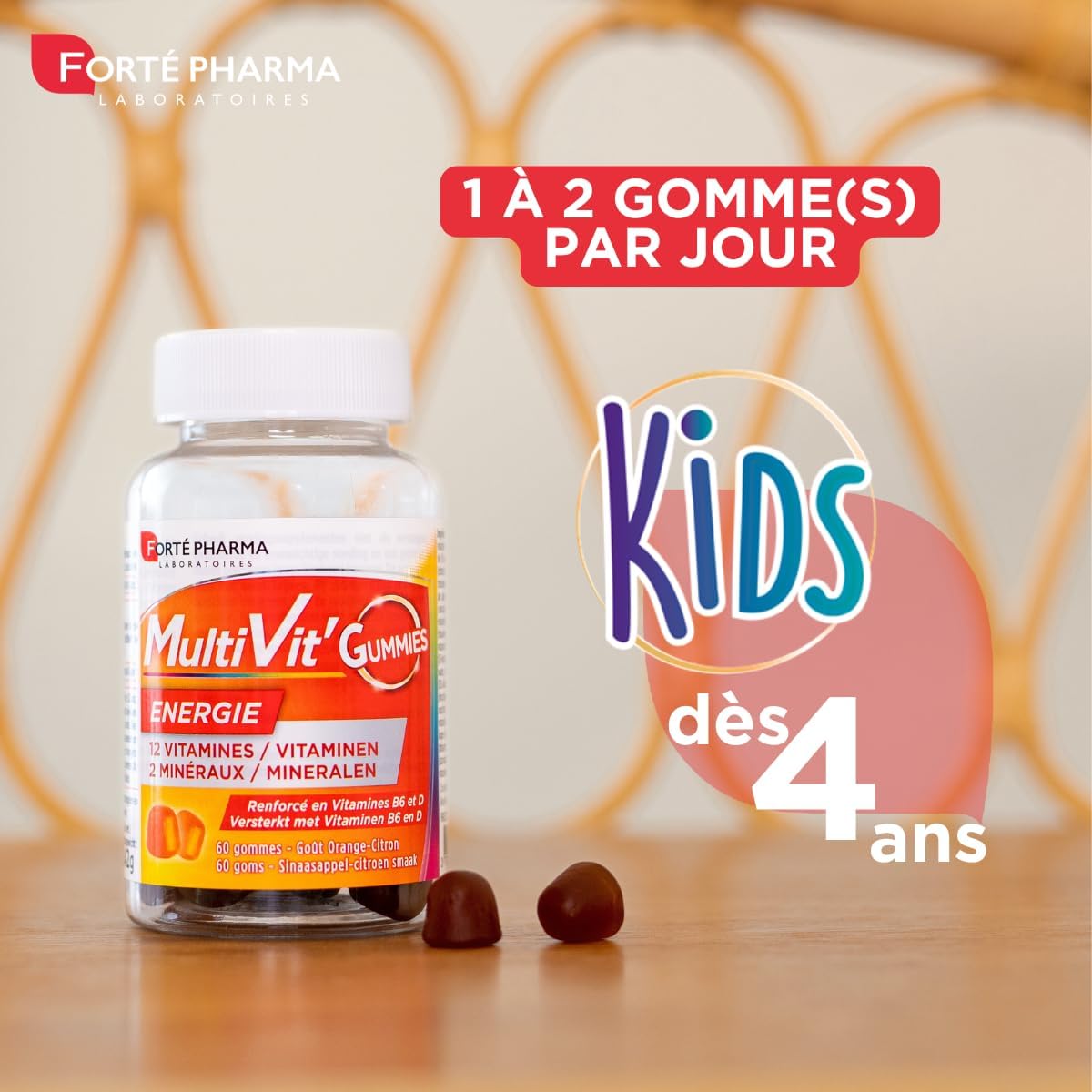 Forté Pharma – Multivit’ Gummies Energie | Multivitamin Gummies – Adults and Children from 4 years old | Vitamins, Minerals, Vitamin D – Anti Fatigue, Immunity | 60 gums – 1 to 2 per day