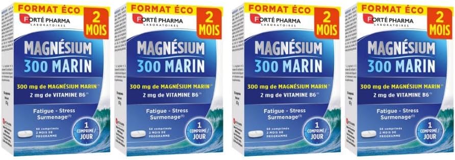 Forté Pharma – Pack x4 Magnesium 300 Marine | Food Supplement with Marine Magnesium and Vitamin B6 – Anti Stress Adult | 56 tablets