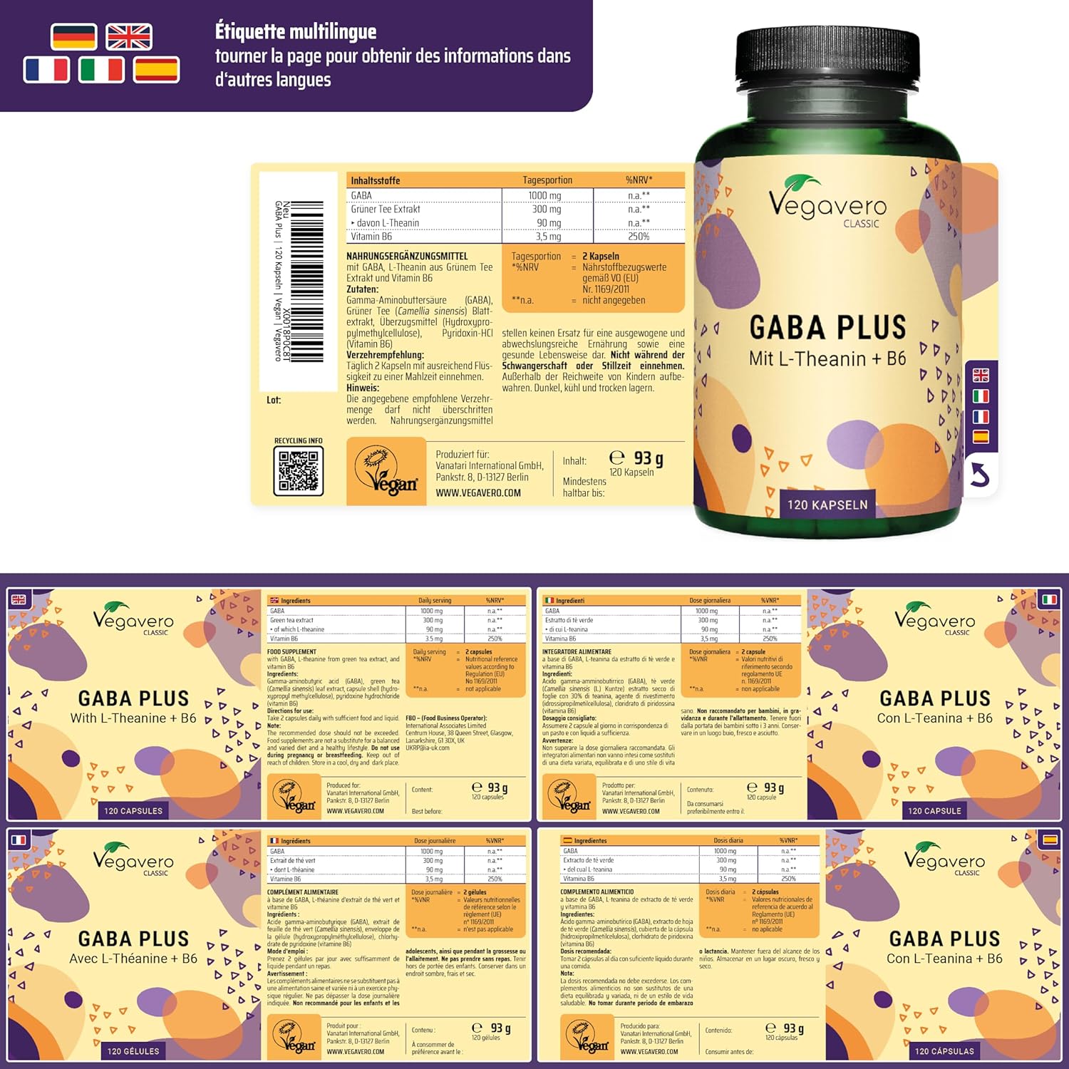 Be the first to review “GABA 1000mg | With L-Theanine & Vitamin B6 | 120 Capsules | Anti-Stress + Better Sleep | Vegan & No Additives | Vegavero®” Cancel reply