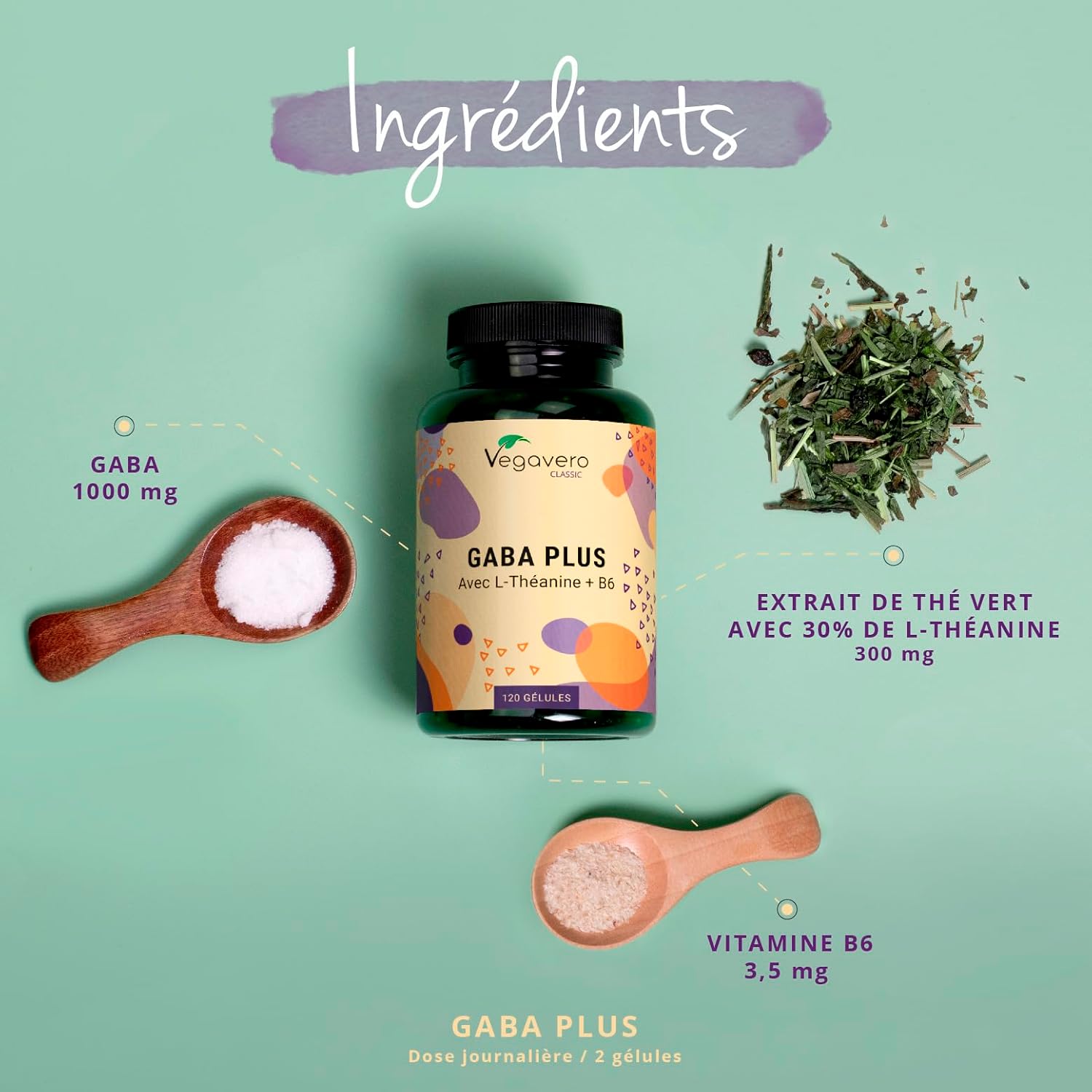 ⭐ WITH L-THELANINE & VITAMIN B6: L-Theanine is one of the main active ingredients in green tea, along with caffeine and catechins from green tea. It increases the production of GABA and its bioavailability. That’s why our GABA capsules contain 500 mg of GABA and 150 mg of green tea extract standardized to 30% pure L-Theanine per capsule. To optimize this synergy, we have also added vitamin B6 because it contributes to normal psychological functioning.