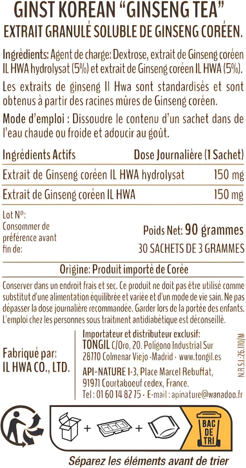 Ginseng Tea GINST15 Ilhwa 30 Bags – Soluble Granulated Tea with Korean Ginseng Extract – Mature Roots and Maximum Absorption | Api-Nature