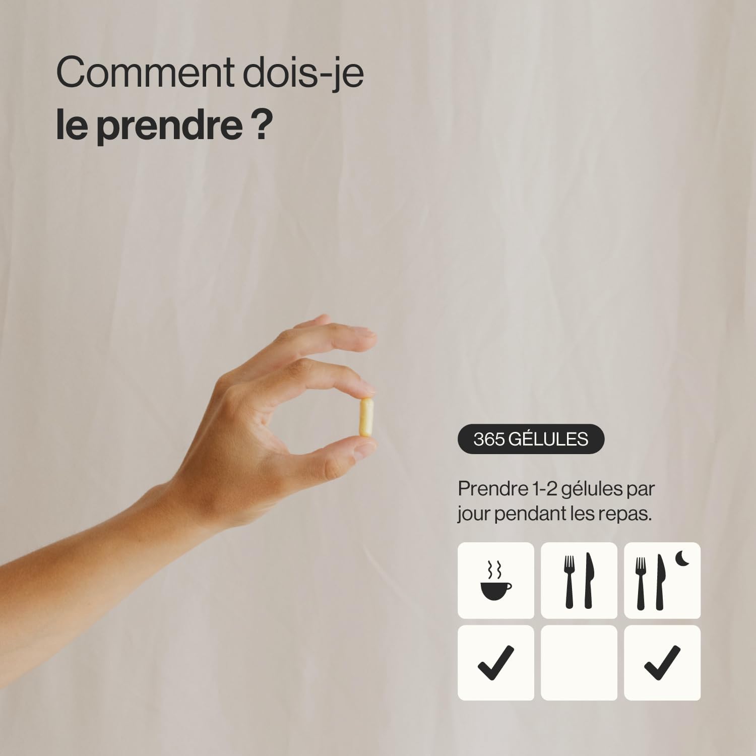LONG LASTING CURE AND PURE FORMULATION: Each bottle contains 365 capsules, up to 6 months of use, with a flexible dosage of 1 to 2 capsules per day. The capsule format is convenient and easy to swallow compared to conventional tablets. No additives, GMOs, gluten, lactose and soy, and manufactured in the EU to GMP standards.