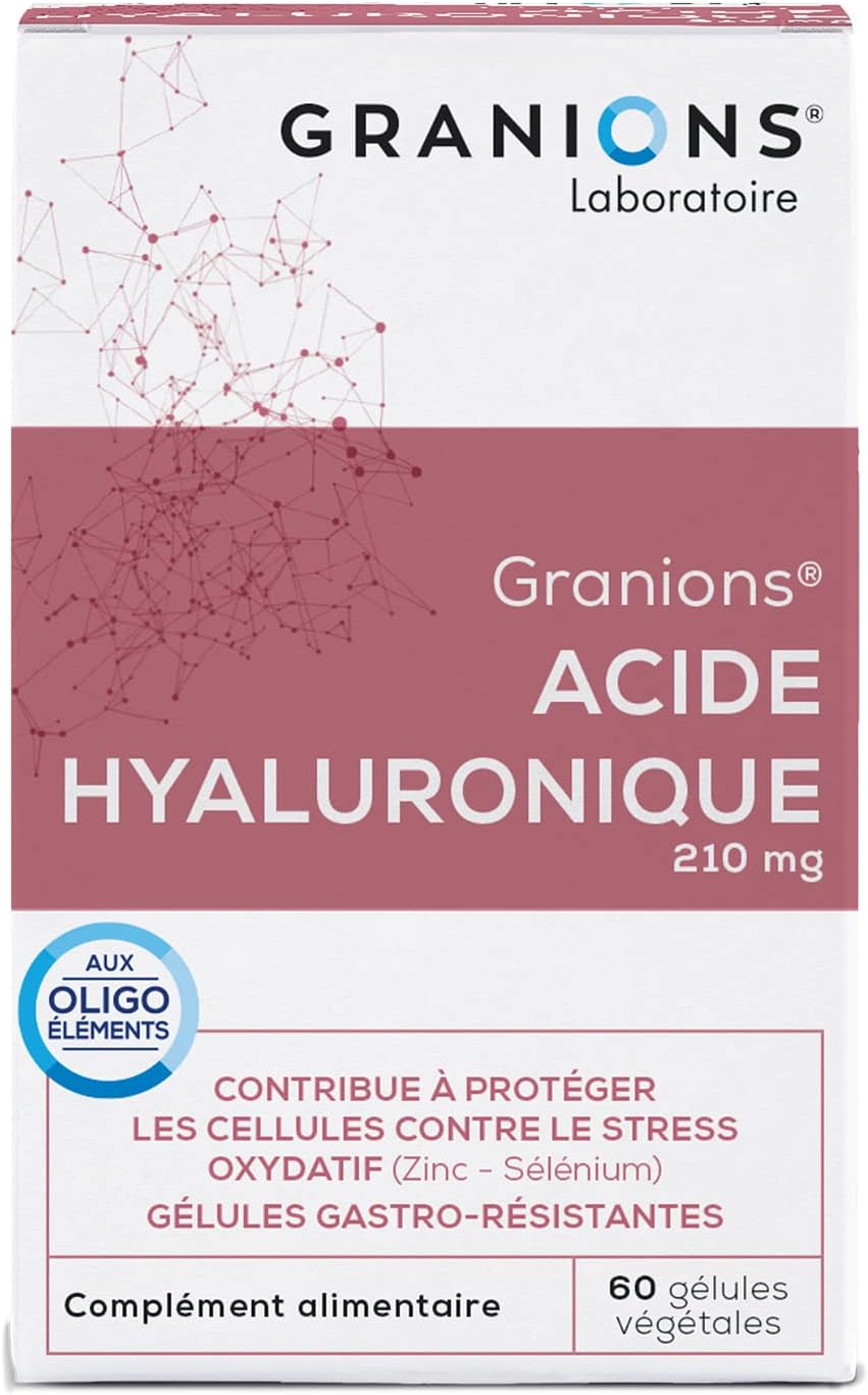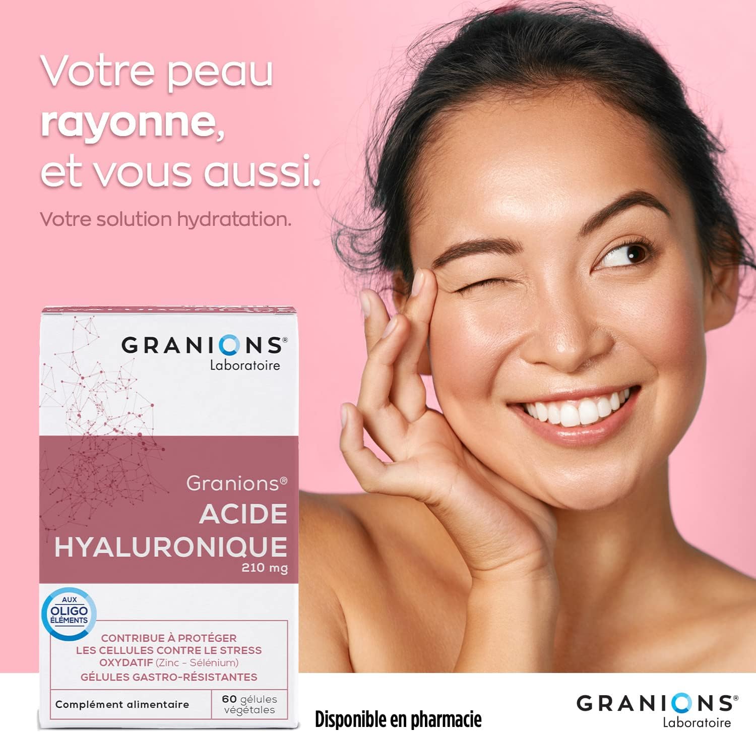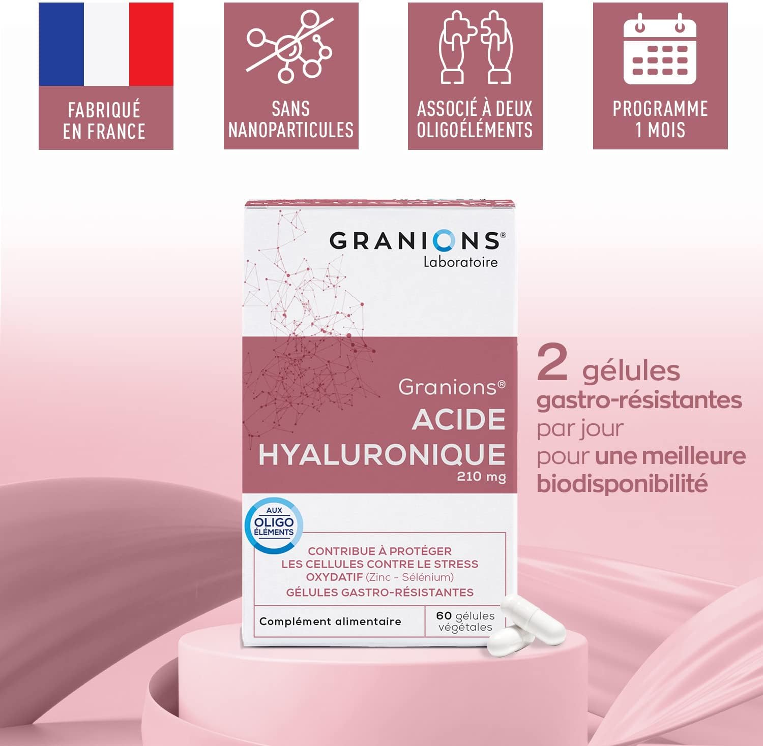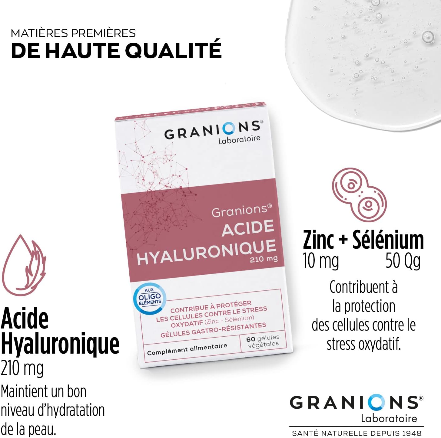 GRANIONS HYALURONIC ACID – Food Supplement – Hyaluronic Acid Capsules – Powerful Anti-Wrinkle Immediate – Hyaluronic Acid + Zinc + Selenium – Anti Aging – 60 Capsules – Made in France