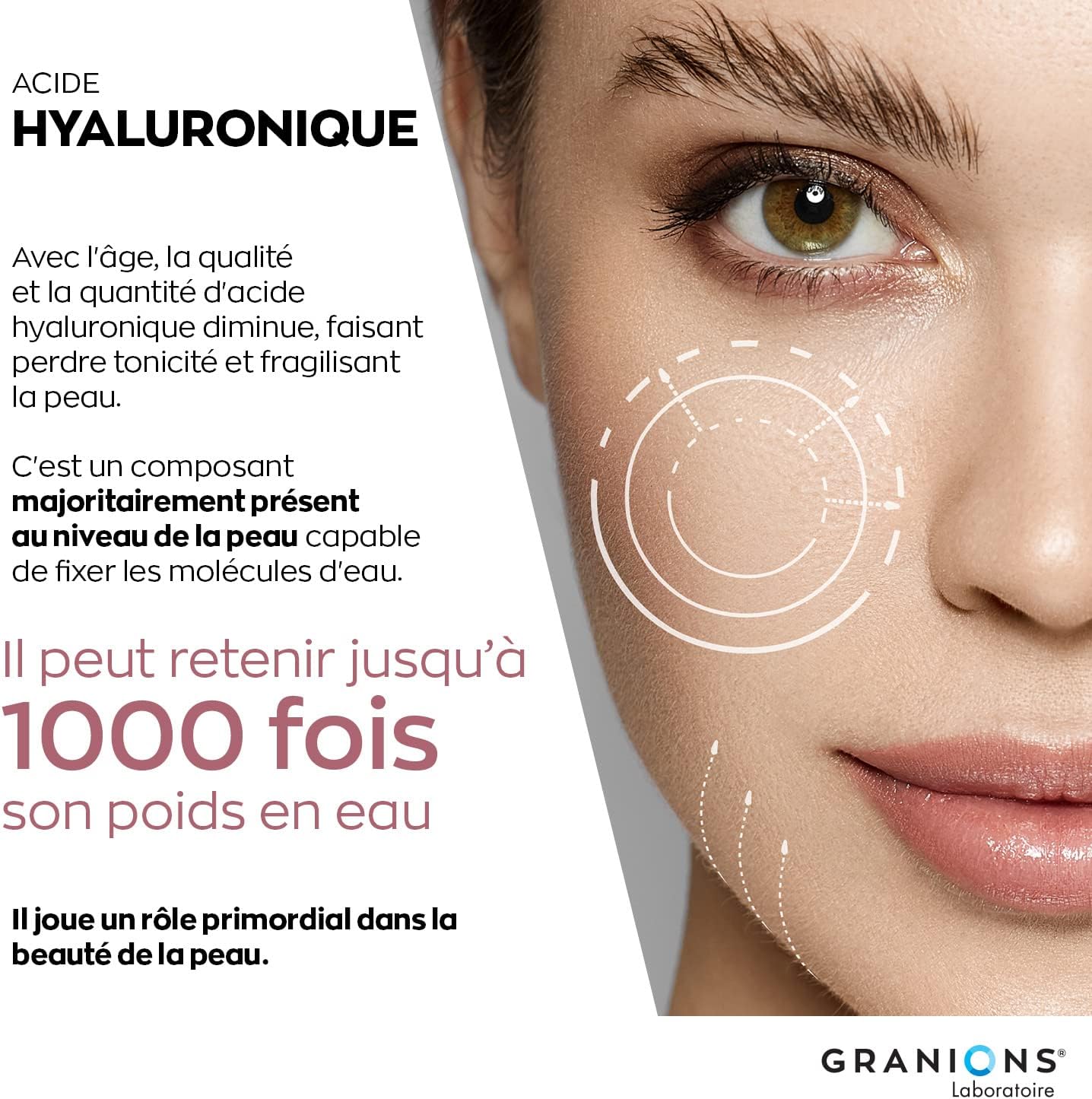 POWERFUL ANTI WRINKLE IMMEDIATE – HYALURONIC ACID | GRANIONS Hyaluronic Acid 210 mg effectively targets wrinkles, increasing skin firmness and promoting a visibly younger appearance. Enriched with Hyaluronic Acid, this powerful anti-aging treatment helps preserve the elasticity and youthfulness of the skin with regular use.