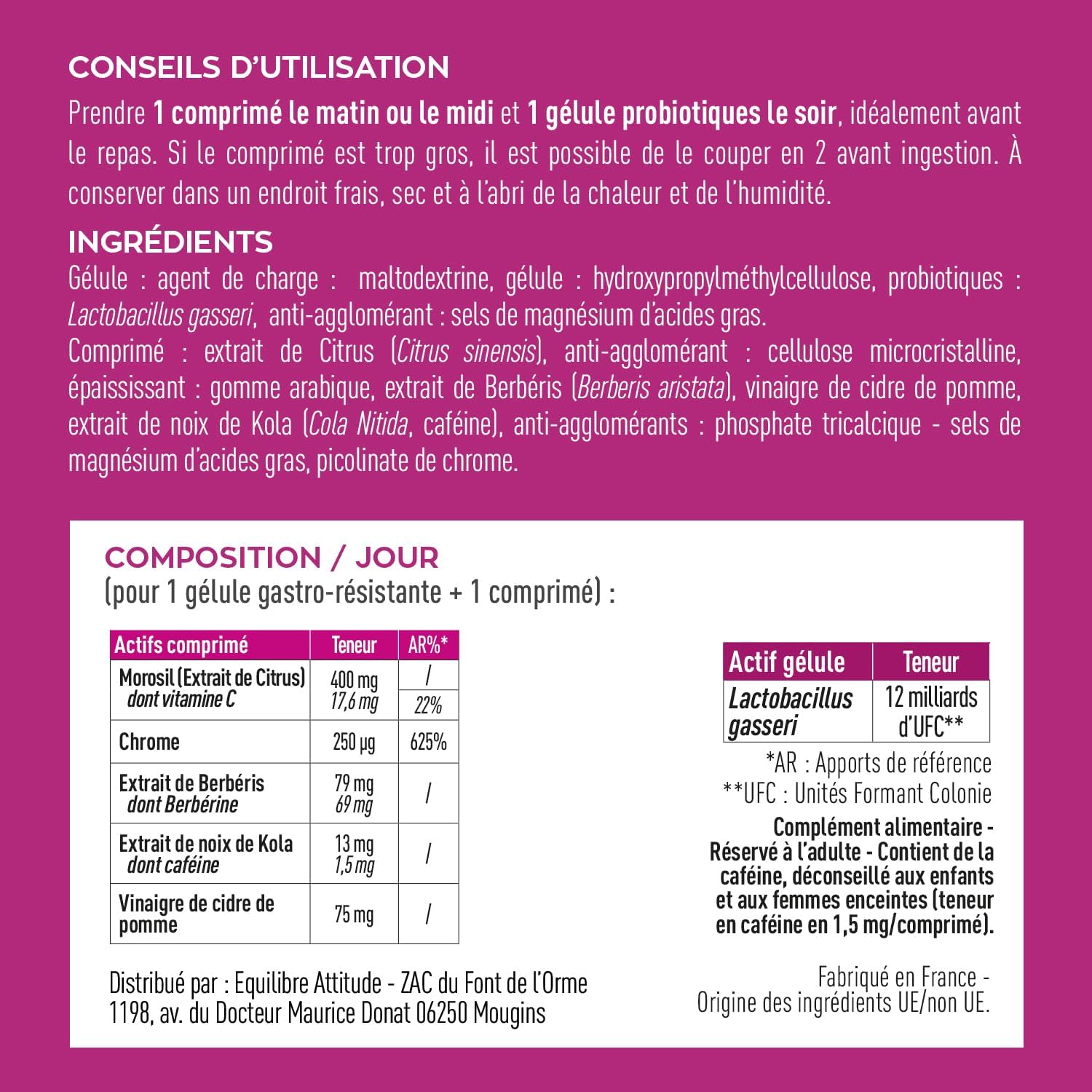 SIMPLE USE, MADE IN FRANCE | Take 1 tablet in the morning or noon and 1 probiotic capsule in the evening to be taken ideally before meals for fast and effective weight loss.