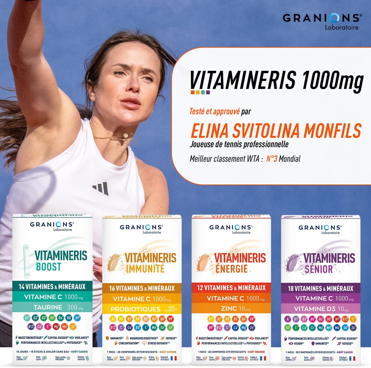 Be the first to review “Granions Vitamineris Energy 1000mg – 28 Effervescent Tablets = 1 Month – Continuous Energy – Intellectual and Physical Performance – 12 Vitamins and Minerals – Made in France” Cancel reply