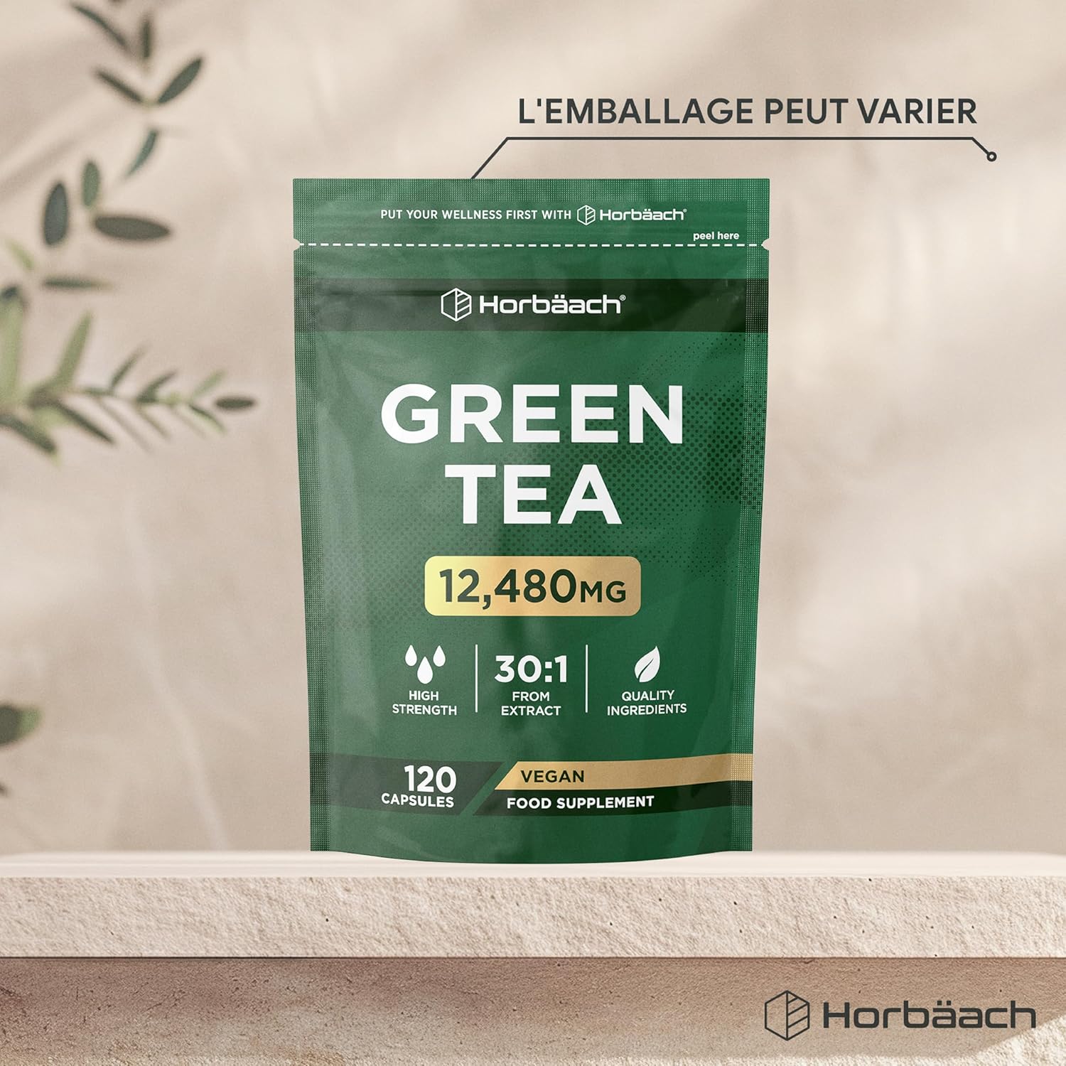 Green Tea Extract Capsules 12480 mg | Green Tea Extract | High Strength Extract | 120 Powder Capsules | Vegan & Vegetarian | by Horbaach