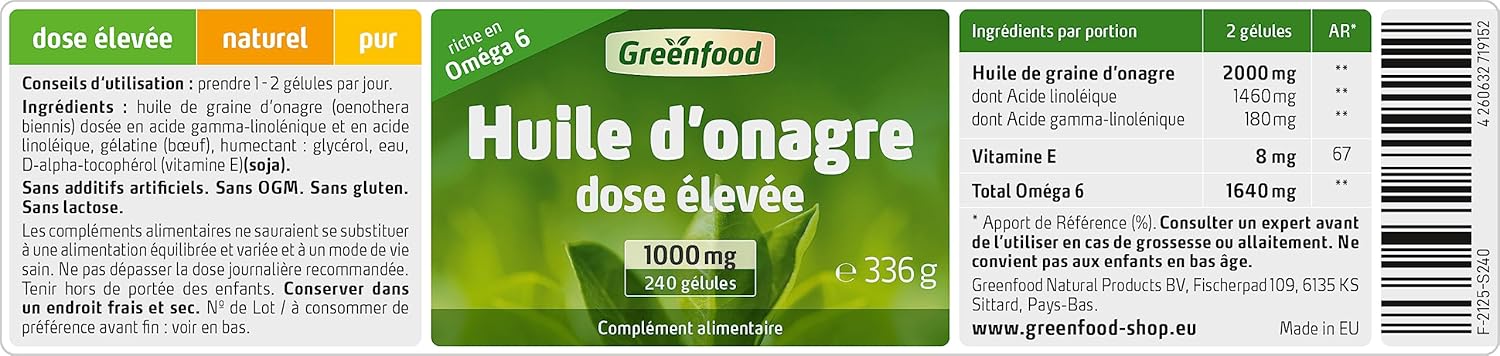 Les gélules d’huile d’onagre de Greenfood contiennent :