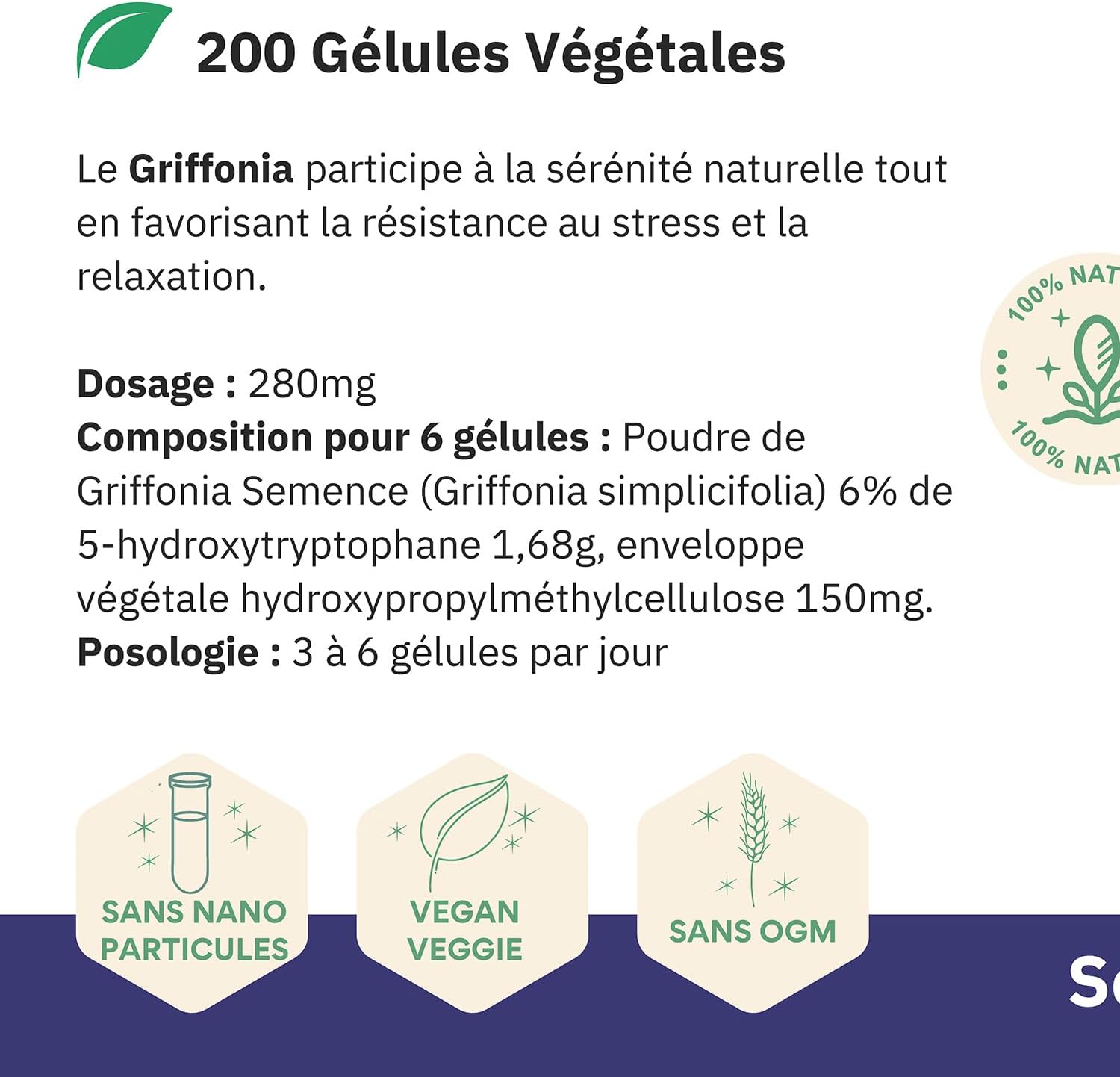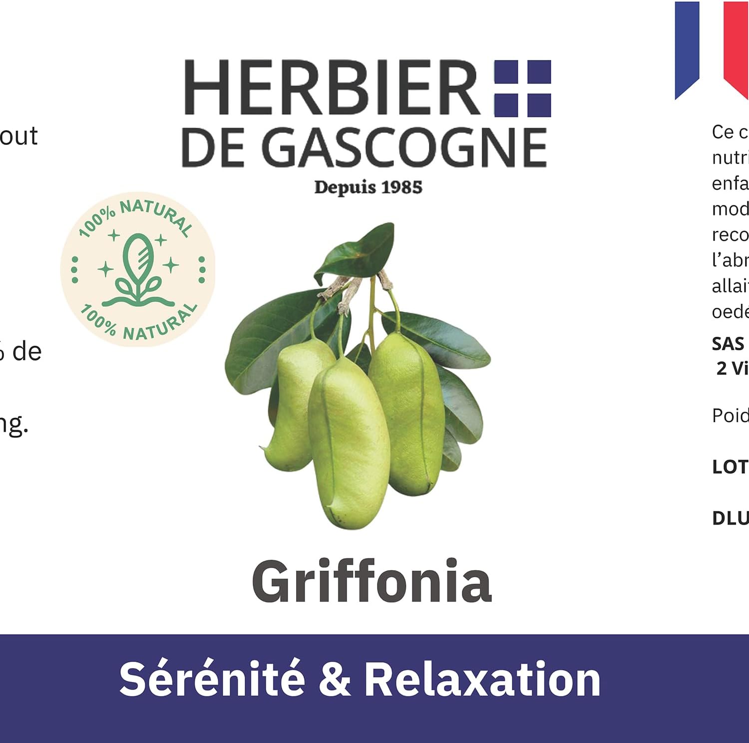 Griffonia | 5-HTP | 200 capsules | Serenity & Relaxation | 280 mg 100% natural dosage without additives and not tablets | L’HERBIER DE GASCOGNE | Herbalist since 1985