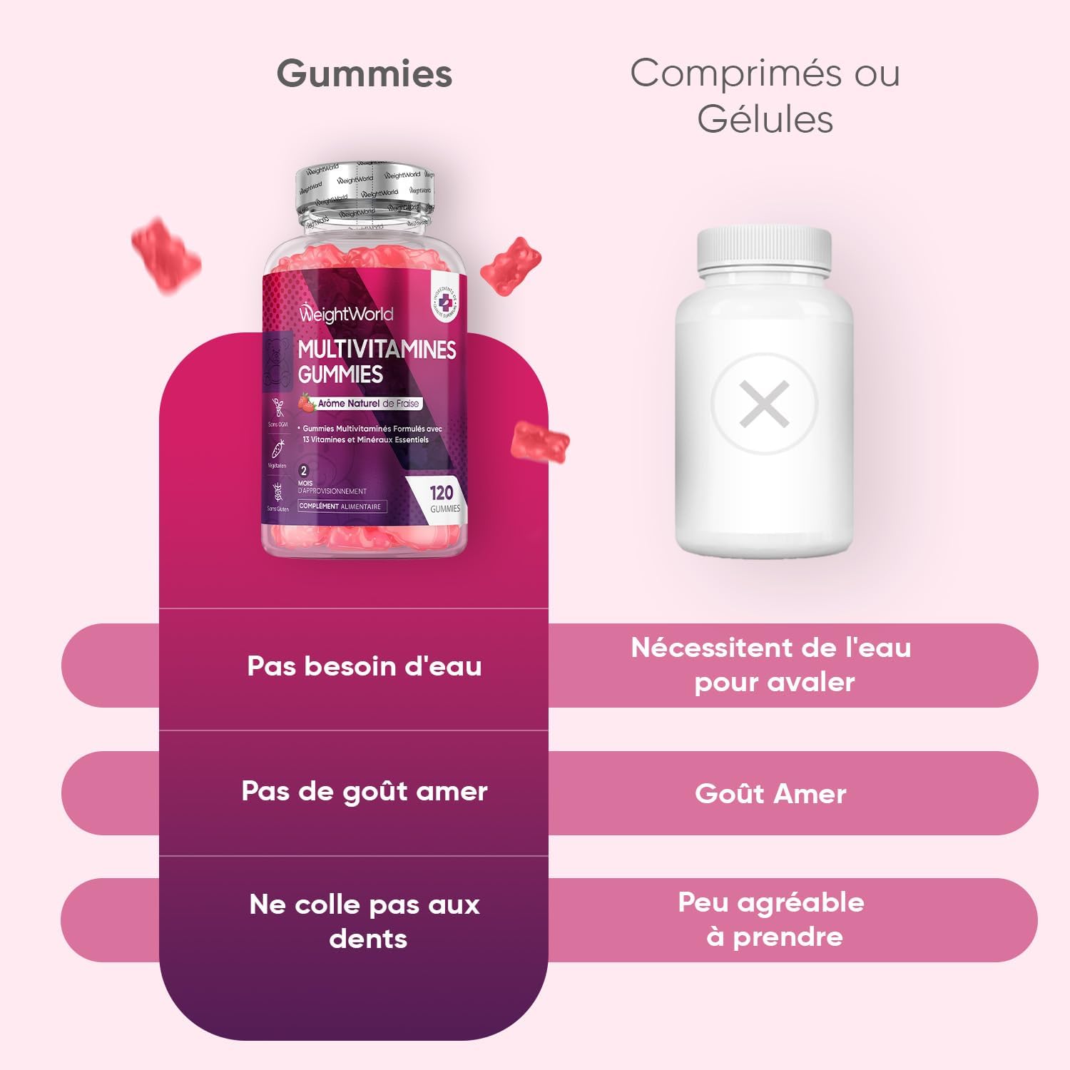 Multi vitamins without additives – Unlike tablets or capsules, convenient to take without water, these multivitamin and mineral gummies, low in sugar and do not stick to teeth, can be consumed anywhere, anytime. In addition, these adult multi vitamin gummies contain only naturally derived ingredients, are GMO free and gluten-free.