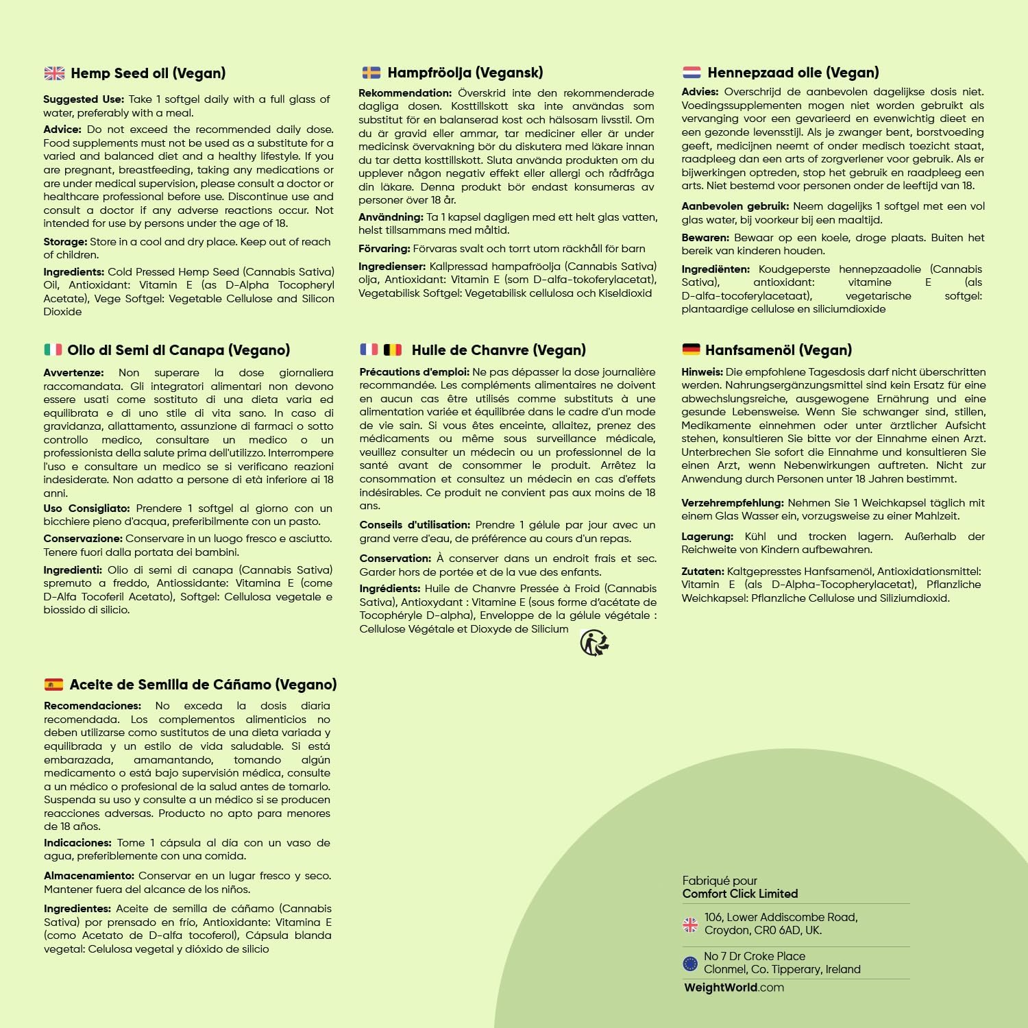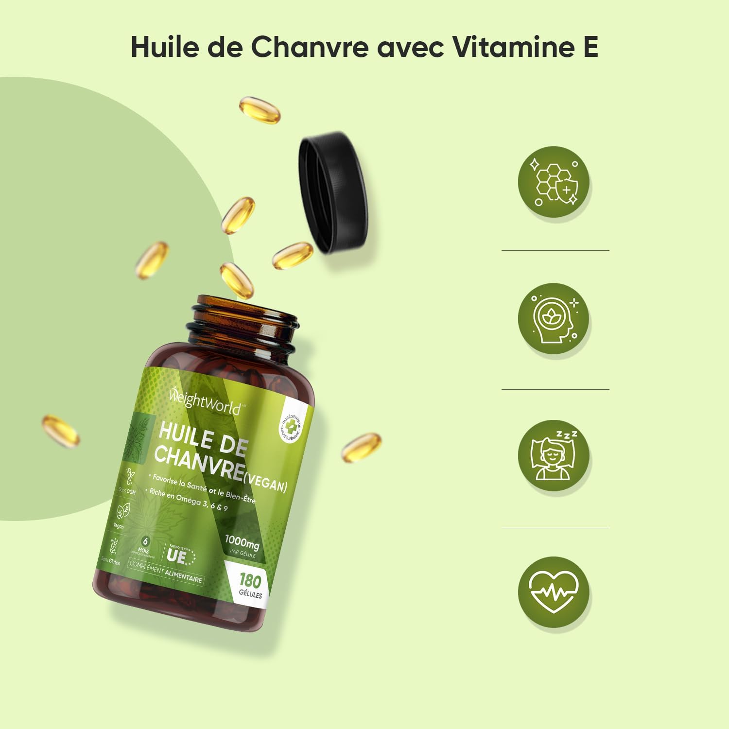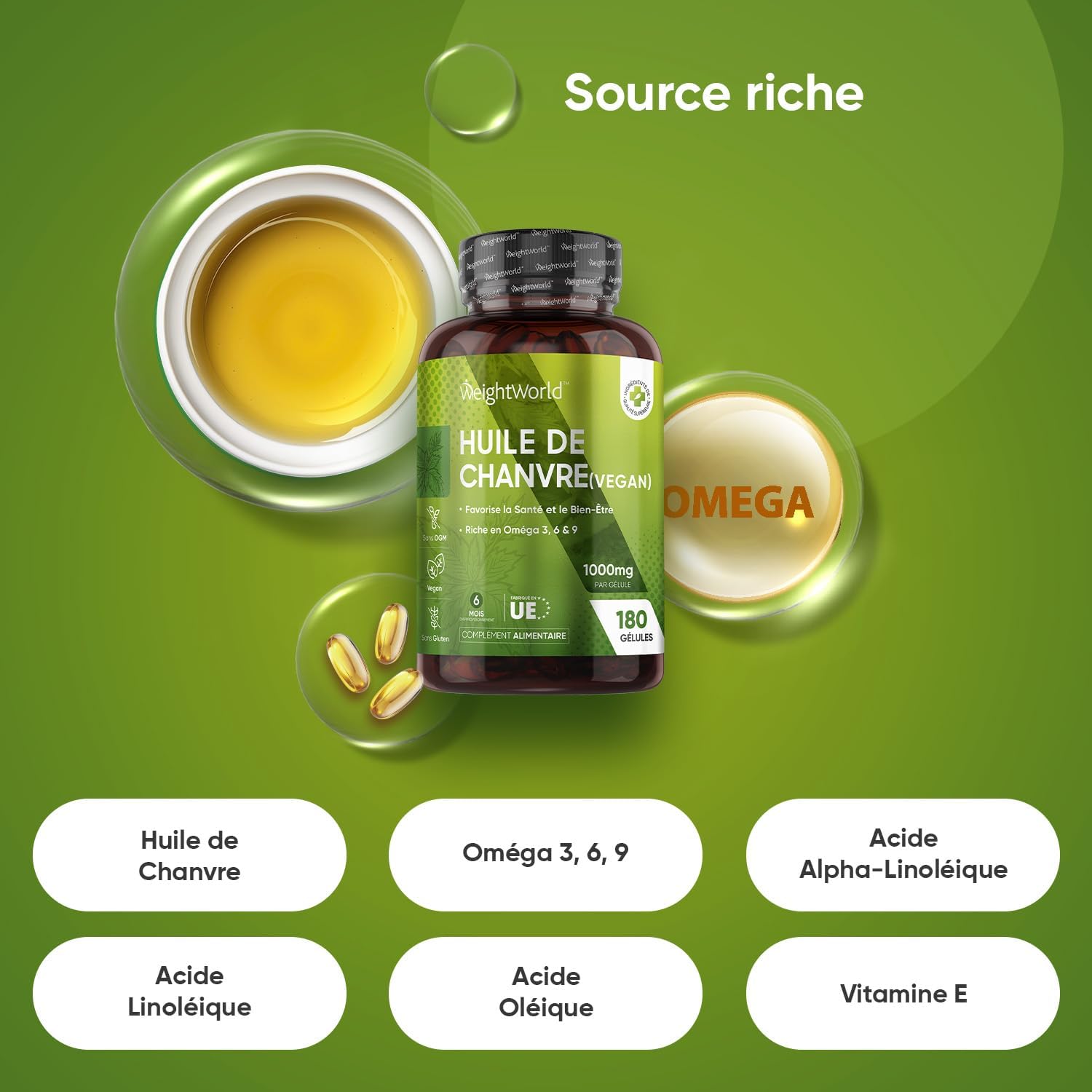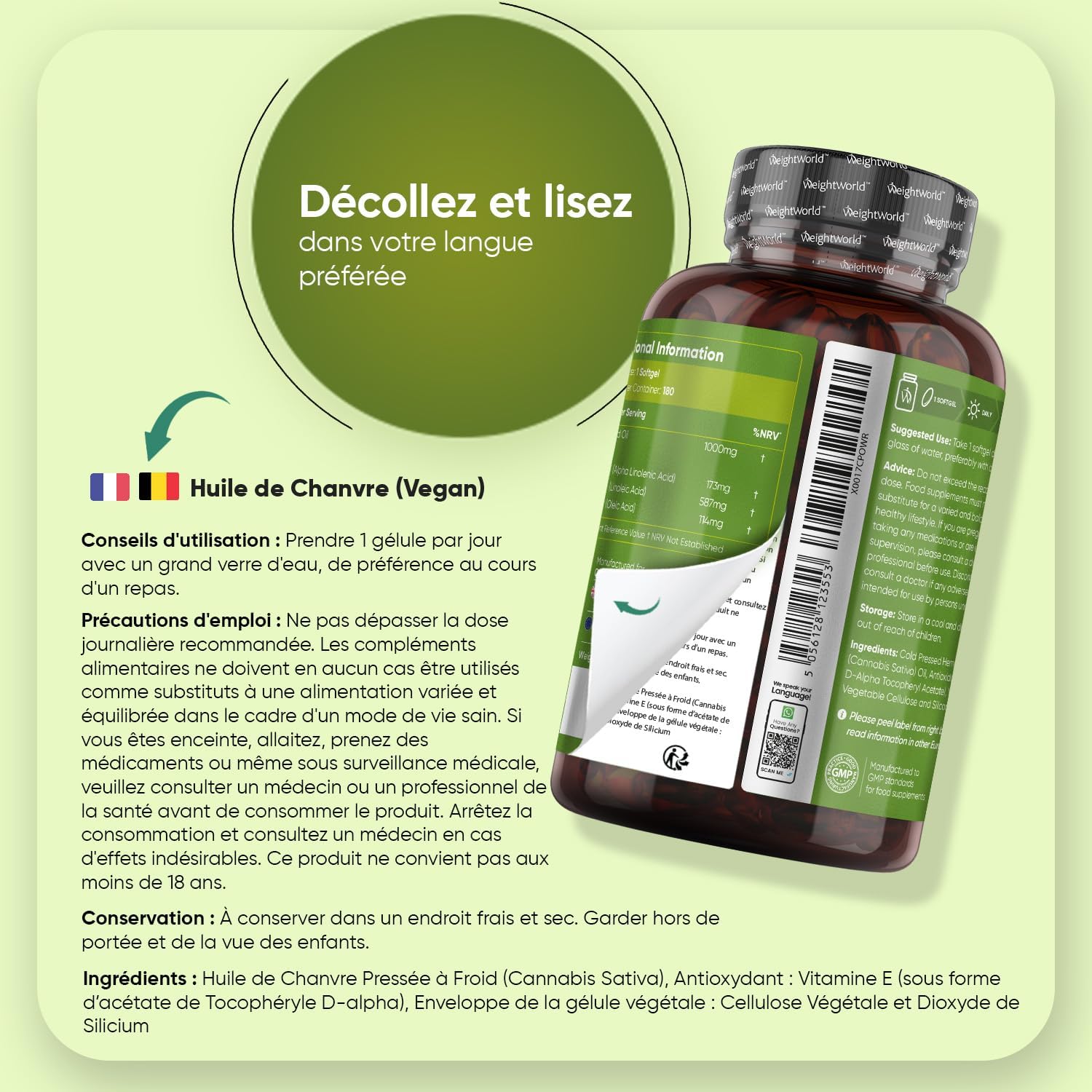 Hemp Oil 1000mg – With a dose of 1000mg of cold-pressed hemp oil per capsule, at the rate of one capsule per day, these 180 capsules give access to 6 months of supply. These multi-purpose Hemp Oil capsules are rich in essential vitamins, minerals, amino acids and omega 3 dha epa.