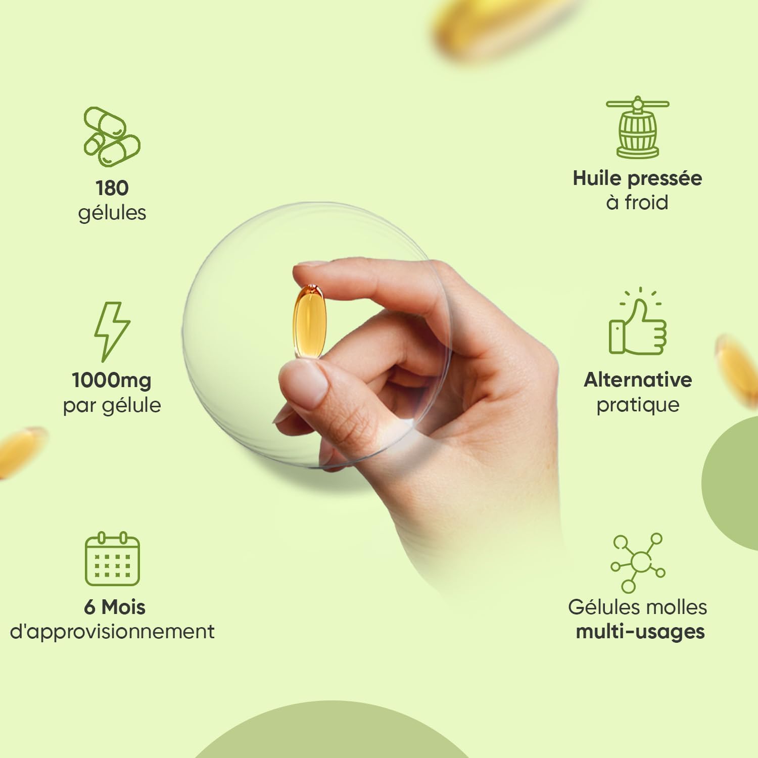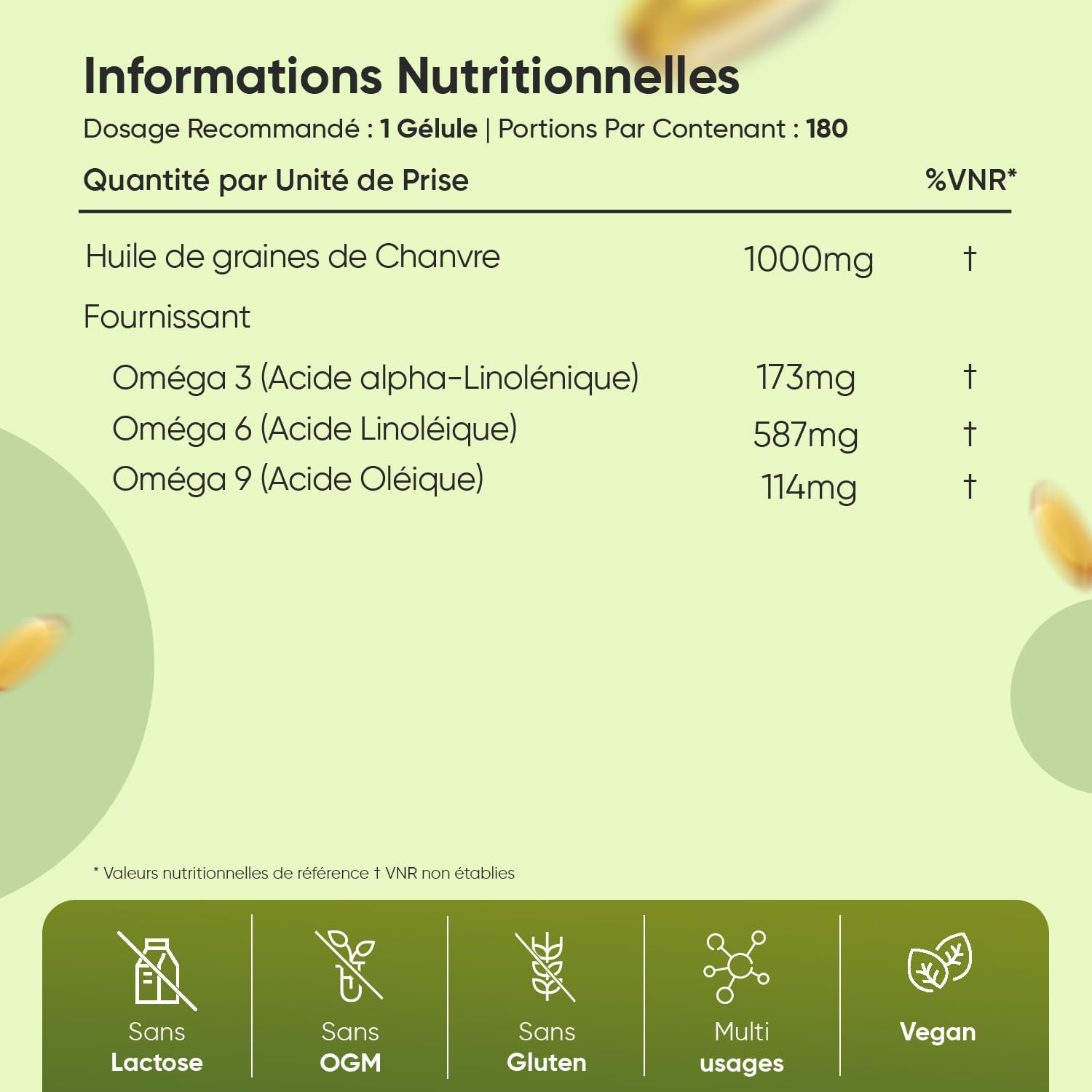 Hemp Oil 1000mg, 180 Capsules For 6 Months, Rich in Omega 3 6 9 With Essential Fatty Acids, Omega 3 Vegan Cold Pressed Hemp Seed Oil With Vitamin E Without Aftertaste