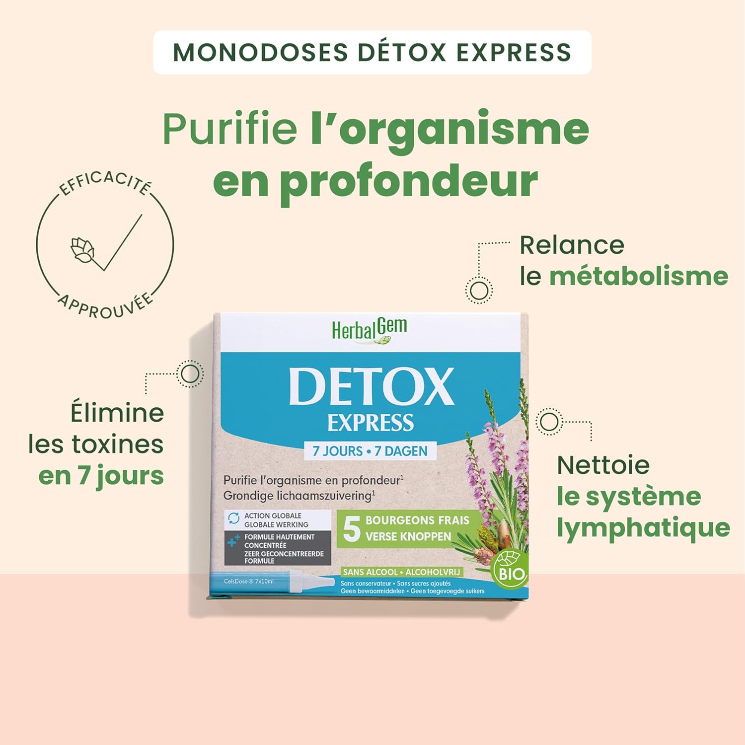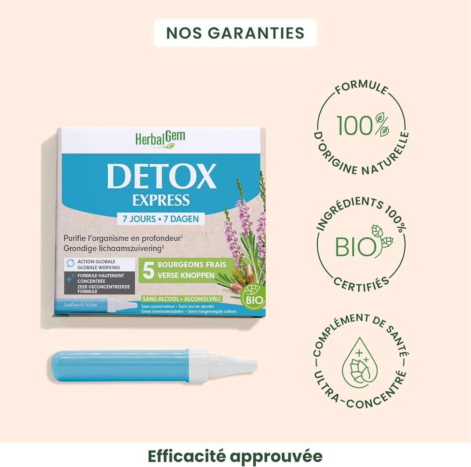 ANTI OXIDANT AND VITALIZING SYNERGY: Formulated with birch and rosemary, antioxidants and detoxifying, elm, chestnut and heather, Detox Express promotes a return to balance the body and inner well-being.