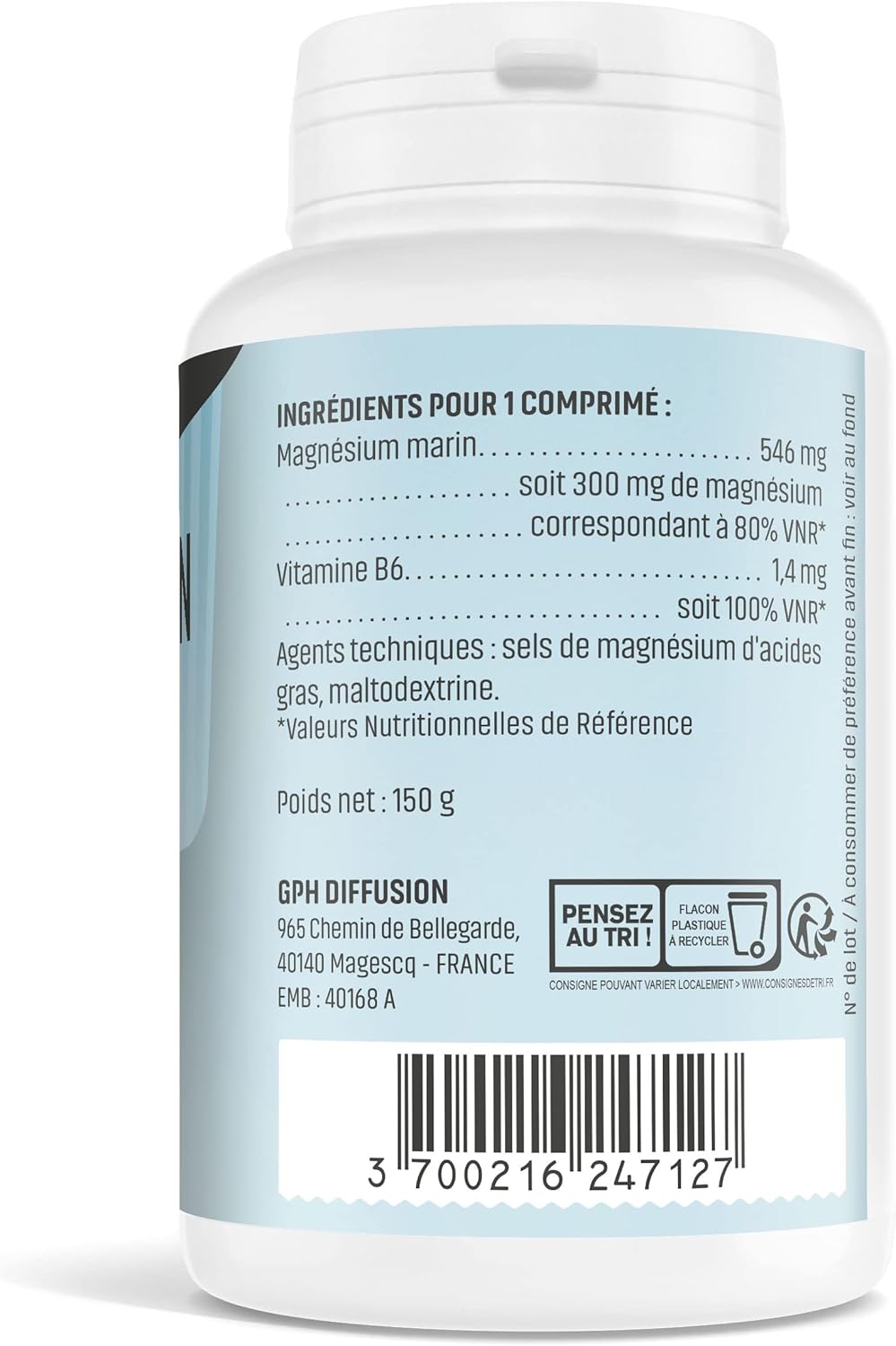 Marine magnesium:546mg (300mg magnesium including 100% NRV), Vitamins B6: 1.4mg (including 100% NRV)