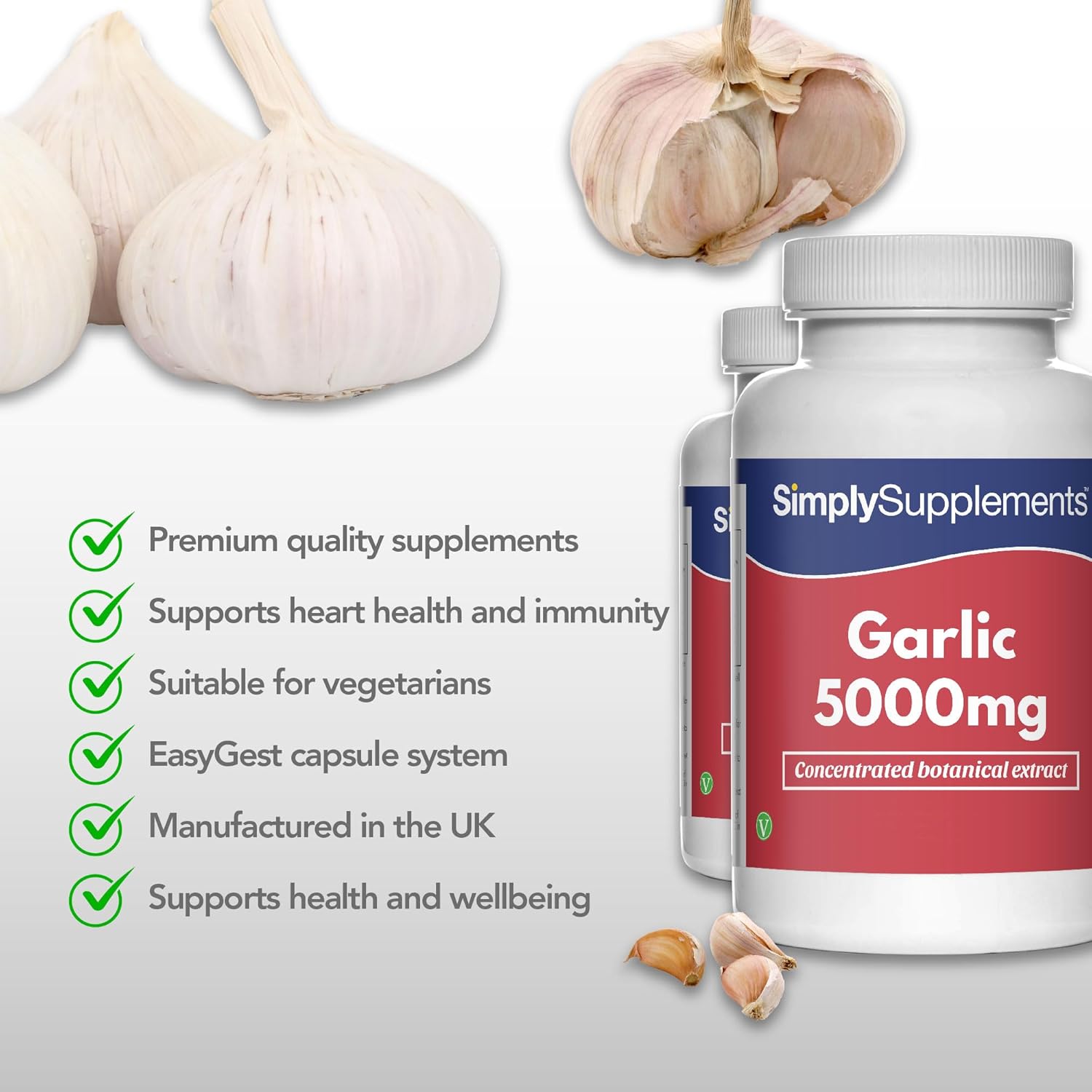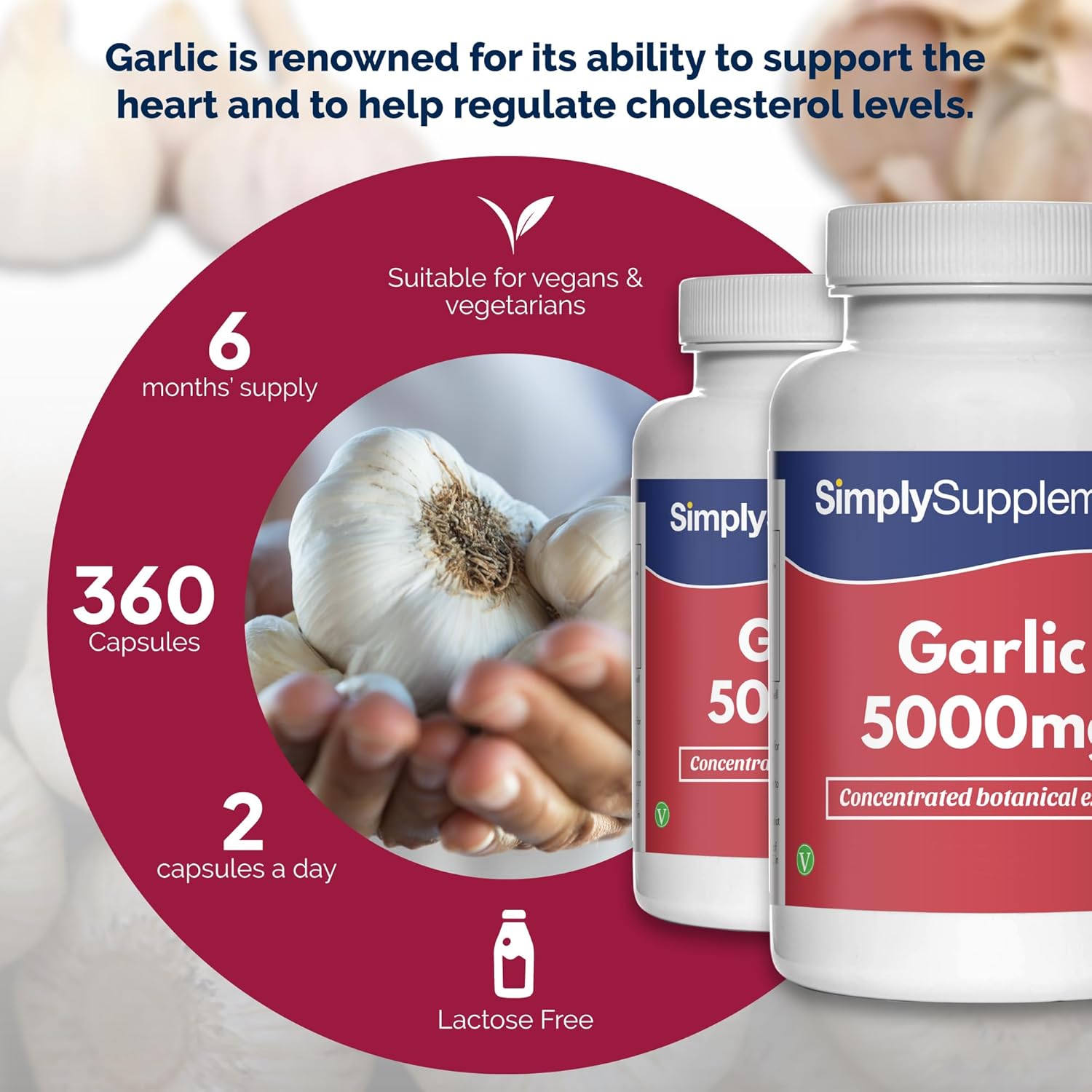 High Potency Garlic Capsules | Vitamin C, Iron & Thiamine | Supports Heart, Blood Circulation & Immunity | Vegan | 360 Capsules = 6 Months | UK Made